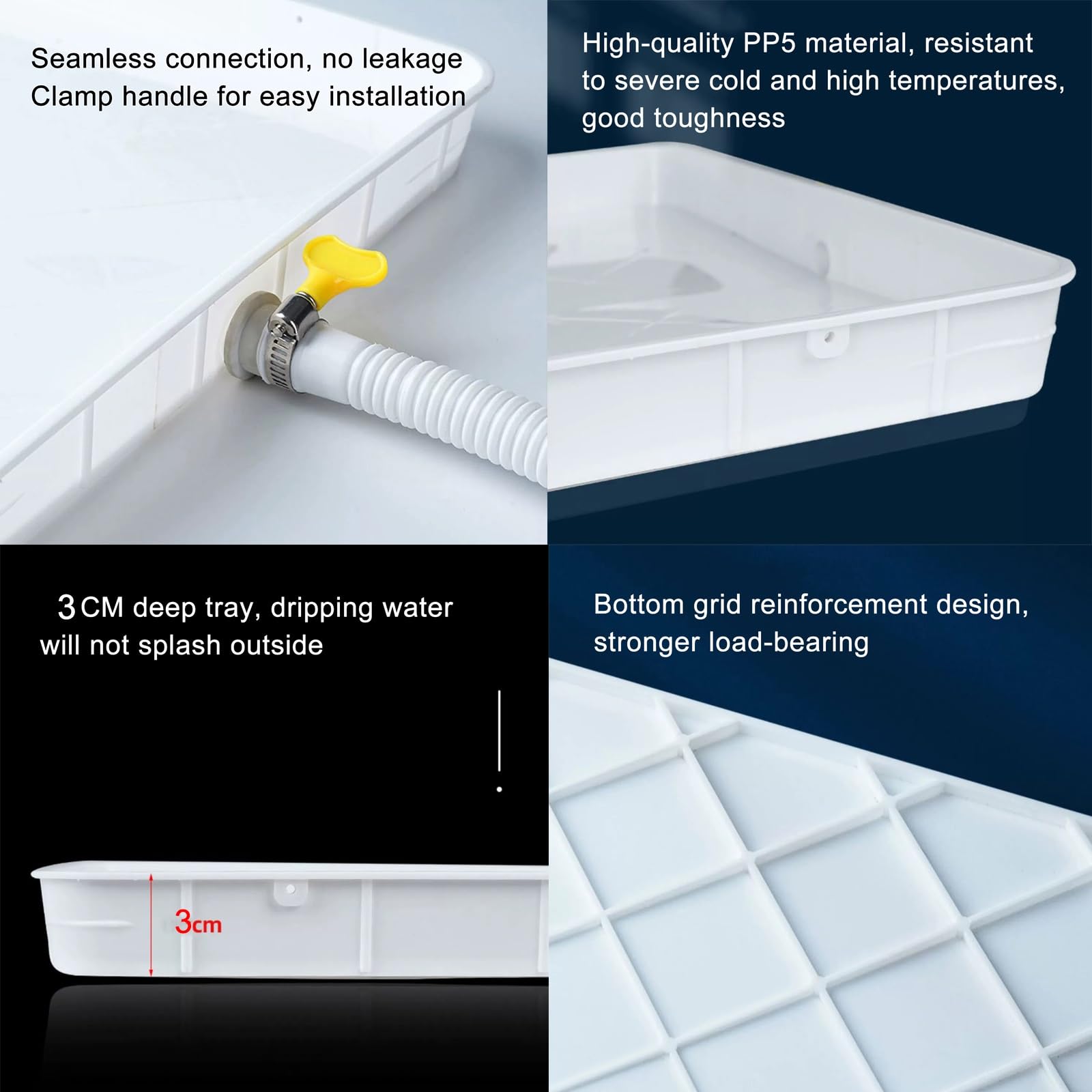 Égouttez la condensation du climatiseur dans un baril ou un seau et utilisez-le pour arroser vos plantes et vos jardins ! En raison du principe selon lequel l'eau s'écoule vers des endroits plus bas, la sortie d'eau est légèrement plus basse, ce qui favorise le drainage. Utilisez un bac de récupération pour collecter et évacuer l'eau qui s'écoule de l'unité extérieure du climatiseur afin d'éviter que les gouttes d'eau ne causent des dommages au bâtiment et d'assurer une protection adéquate à votre maison. Spécification:Nom du produit : bac de réception d'eau de climatisation/bac de réception d'eau de condensat de l'unité extérieure de climatisation/bac de réception d'eau de l'unité extérieure de climatisation/bac de réception d'eau de climatisation/bac de réception d'eau de collecteur d'eau de condensat/plaque de drainage de climatisationmatière : plastiqueTaille du produit:Unité extérieure de climatiseur 1-2P : 81x33x3cmUnité extérieure de climatiseur 3-5P : 93x45x3cmAccessoires : tuyaux de drainage, fils, colliersLe bac de récupération résout complètement le problème des fuites d'eau des unités internes et externes du climatiseur. Bac de Vidange, Bac de Récupération des Condensats en Plastique, Kit Vidange Universel Climatiseur Fenêtre pour Les Systèmes de Pompe À Chaleur de Climatiseur Divisé Intérieur/extérieur (Color : 81.5 Protégez votre propriété des années de dégâts d’eau et des climatiseurs de fenêtre qui dégoulinent ! Notre bac à eau de climatisation peut être utilisé à l'intérieur et à l'extérieur, ce qui en fait l'accessoire parfait pour toute installation de climatisation. Accessoires de climatiseur fixe et pompe à chaleur. Bac a condensat ... BAC À CONDENSAT EN PLASTIQUE 420 x 940 mm. Vendu par ShopMarcoline. 1 autre... Ne rendez pas fou votre propriétaire et/ou vos voisins parce que votre climatiseur de fenêtre dégouline ! Avec lui, vous n'avez plus à vous soucier du climatiseur qui goutte ennuyant ! Le bac de récupération de l'unité extérieure du climatiseur est moulé à partir de matières plastiques de qualité alimentaire à haute résistance avec une surface lisse, une résistance élevée à la chaleur et une résistance élevée aux chocs, et peut être utilisé à plusieurs reprises à l'extérieur pendant une longue période. Accessoire Climatiseur 81x33x3cm Bac A Condensat Clim, Plateau Collecteur D'Eau En Pp, Kit De Raccord De Bac Condensat Clim Bac de récupération des condensats pour pompes à chaleur - 250x500mm... Vous pouvez évacuer la condensation de votre climatiseur dans un seau ou connecter le tuyau d'évacuation directement à votre pot de fleur ou à votre jardin pour un arrosage plus facile !