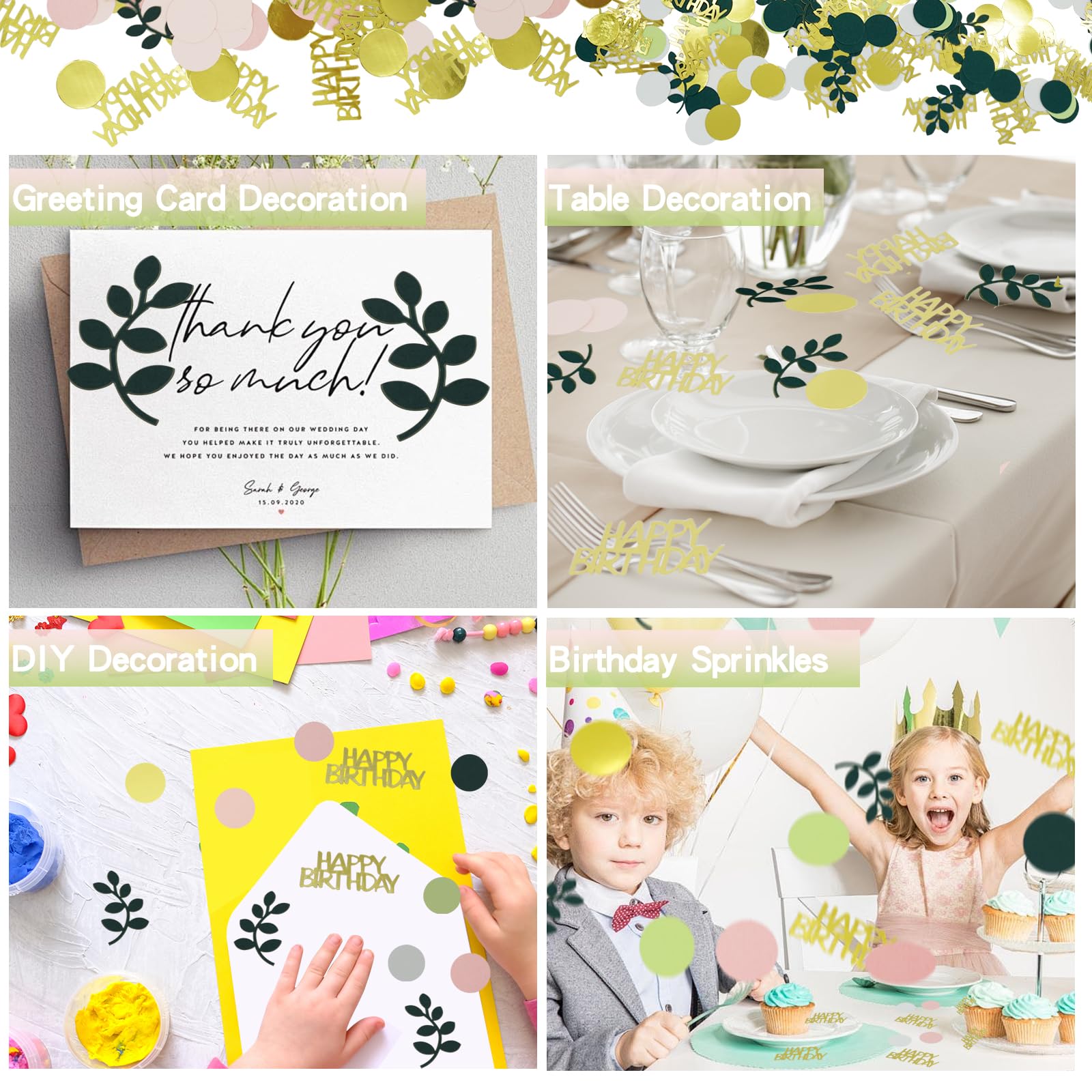 Ces confettis décoration anniversaire conviennent à toutes les fêtes, du dîner élégant à la fête d’enfant ou d’adulte Que vous célébriez un 1er, 18e, 30e, 40e ou 50e anniversaire, ces confettis apporteront une note joyeuse et élégante à votre événement. Feuilles Eucalyptus Papier Dcsfadq Lot De 200 Confettis Décoratifs De Table D'anniversaire - Dorés Vert Sauge Avec Paillettes - Décoration De Fête Pour Femme - Décoration De Table D'anniversaire (30 Ans Confettis D'anniversaire Deco Anniversaire Description du produit Sublimez vos fêtes avec ce lot de 200 confettis anniversaire spécialement conçu pour décorer vos tables et apporter une atmosphère festive. En couleur or confettis anniversaire et vert éclatant, ces éléments décoratifs incluent les mots Joyeux Anniversaire, des pois et des feuilles décoratives. Contrairement aux confettis classiques en papier, ils ne se... Attention toutefois, en raison de leur petite taille, il est recommandé de les tenir hors de portée des enfants en bas âge. Chaque lot contient 200 pièces soigneusement conçues pour offrir un mélange élégant et festif, parfait pour tous types d’événements. Outre leur usage sur les tables, ces confettis de table d'anniversaire peuvent être intégrés dans des cartes d’invitation, des décorations murales, des projets de DIY ou de scrapbooking. Tenir hors de portée des jeunes enfants et toujours utiliser sous la surveillance d’un adulte pour garantir un usage sans risque Pour une décoration de fête à la fois douce, moderne et inoubliable, ce lot est le choix parfait. On y retrouve des confettis Happy Birthday en lettres découpées, des formes rondes dorées scintillantes, ainsi que de superbes feuilles vert eucalyptus en papier. Matériaux sûrs et Résistants : Fabriqués à partir de papier cartonné et de PVC résistant, ces confettis Happy Birthday ne se déforment pas facilement. Ils sont idéaux pour orner une table d’anniversaire, qu’il s’agisse d’un buffet, d’un repas en famille, ou d’une réception plus formelle. boîte a dragées personalisée contenant mariage baptême sauge eucalyptus... Avertissement De Sûreté 0 Sécurité et précautions : Ces confettis de table d'anniversaire sont de petite taille, à manipuler avec précaution. Les tons sauge vert eucalyptus confettis decoration apportent une touche naturelle et chic à votre ambiance de fête. Confettis de table ananas dorés et verts pailletés 42 g - Vegaooparty