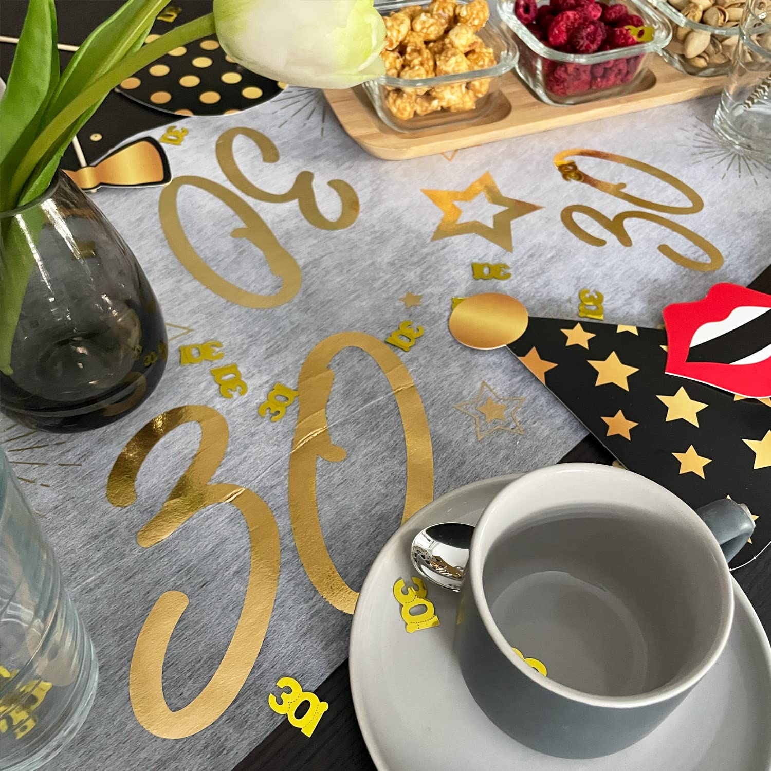 Confetti de table - Poppy & pops Confettis Numérotés Ambiance Festive Lot De 50 Confettis En Or Rose Pour Bague De Fiançailles Confettis Rose Contenu de la livraison : plus de 300 confettis (environ lot de 30 pièces Happy Birthday et plus de 300 pièces. en forme de pois). Couleur : or rose. Matériau Ces confettis créent une ambiance sympathique. Améliorez votre fête de fiançailles, votre enterrement de vie de jeune fille ou votre fête prénuptiale avec notre lot de 50 confettis en or rose. Ces confettis pailletés faits à la main sont en forme de bagues de fiançailles et mesurent 2,5 cm chacun, ajoutant une touche de romance et d'élégance à votre décoration de table. Parfait pour disperser sur les tables ou inclure dans des... Ces confettis créent une ambiance sympathique., - Dimensions de chaque confetti : Hauteur : 2,7 cm - Largeur : 3 cm