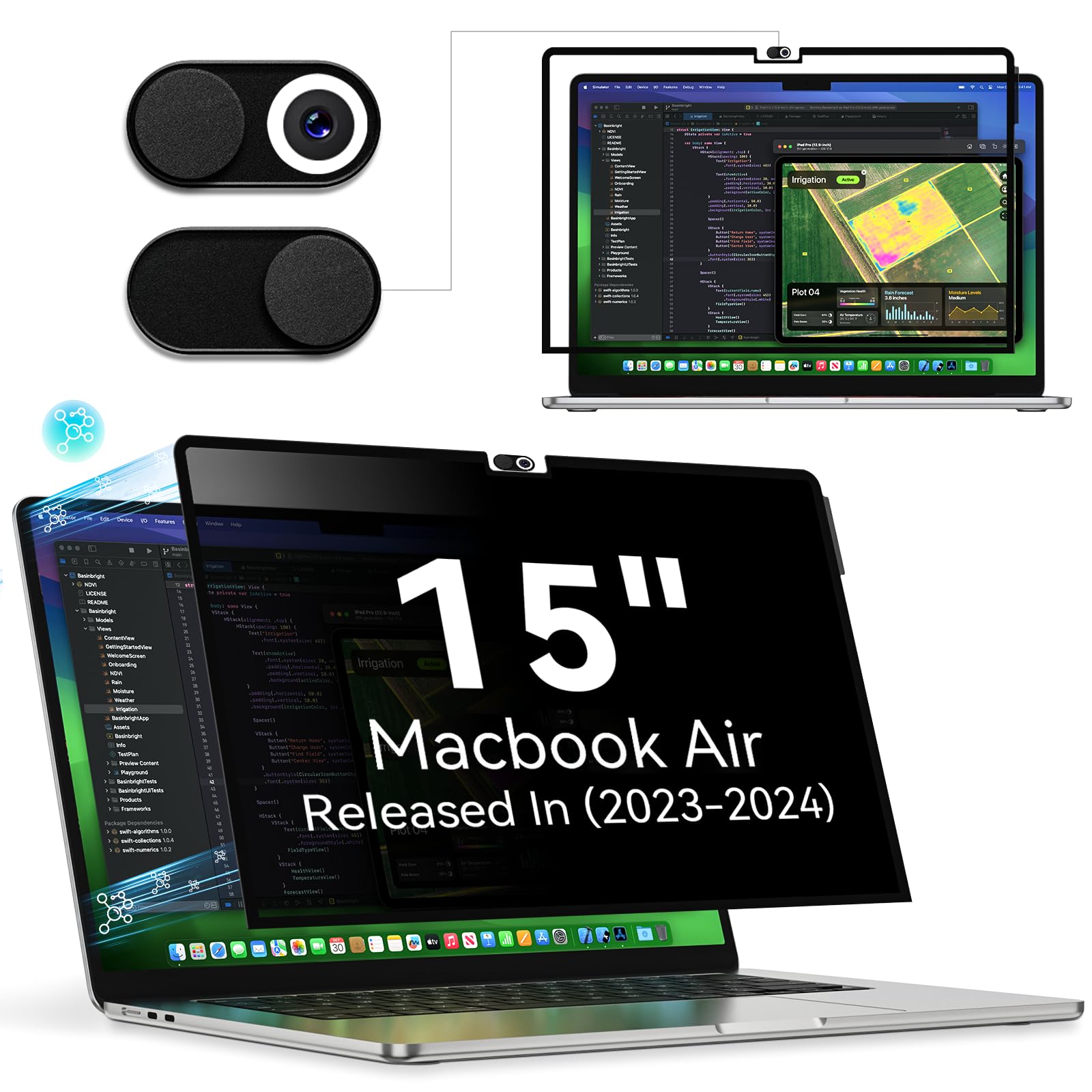 Apple MacBook Pro 14'' M3 Pro 2023 11/14 coeurs SSD 512 Go 18Go RAM Noir sidéral - MacBook Pro Anti Lumière Bleue Macbook M2 M3 M4 SenseAGE Filtre De Confidentialité Magnétique Pour MacBook Air 15,3 Ultra Fin Modèle compatible avec MacBook 15,3 : l'écran de confidentialité magnétique FYJRCY pour MacBook Air 15, conçu pour s'intégrer parfaitement à votre MacBook Air 15,3 (2023, 2024, 2025, M2, M3, M4) (modèle [Protégez Votre Vie Privée] « occultant » efficace de la vie privée des vues latérales en dehors de l'angle de vision de 60 degrés, partout dans les espaces publics, les cafés, les aéroports et autres zones très fréquentées, protège vos informations des regards indiscrets. Design Amovible Magnétique Filtre de Confidentialité]Magnétique privacy protecteur d'écran compatible avec MacBook Air 15 in (2023-2025, M2/M3 /M4 Chip) - - Veuillez vérifier que le numéro de modèle au dos de la coque est bien A2941 A3114 avant d'acheter, non compatible avec d'autres modèles de MacBook. [Une confidentialité étonnante]Nous avons effectué plus de 6,000... [Réutilisable] Couche oléophobe haute densité, peut empêcher les empreintes digitales, peut être lavée, rincée sous l'eau puis séchée doucement avec un chiffon en nanofibres. [Protection des Yeux] L'écran de confidentialité pour moniteurs offre non seulement de l'intimité, mais protège également vos yeux en filtrant les rayons UV et en réduisant la lumière bleue pour mieux dormir.