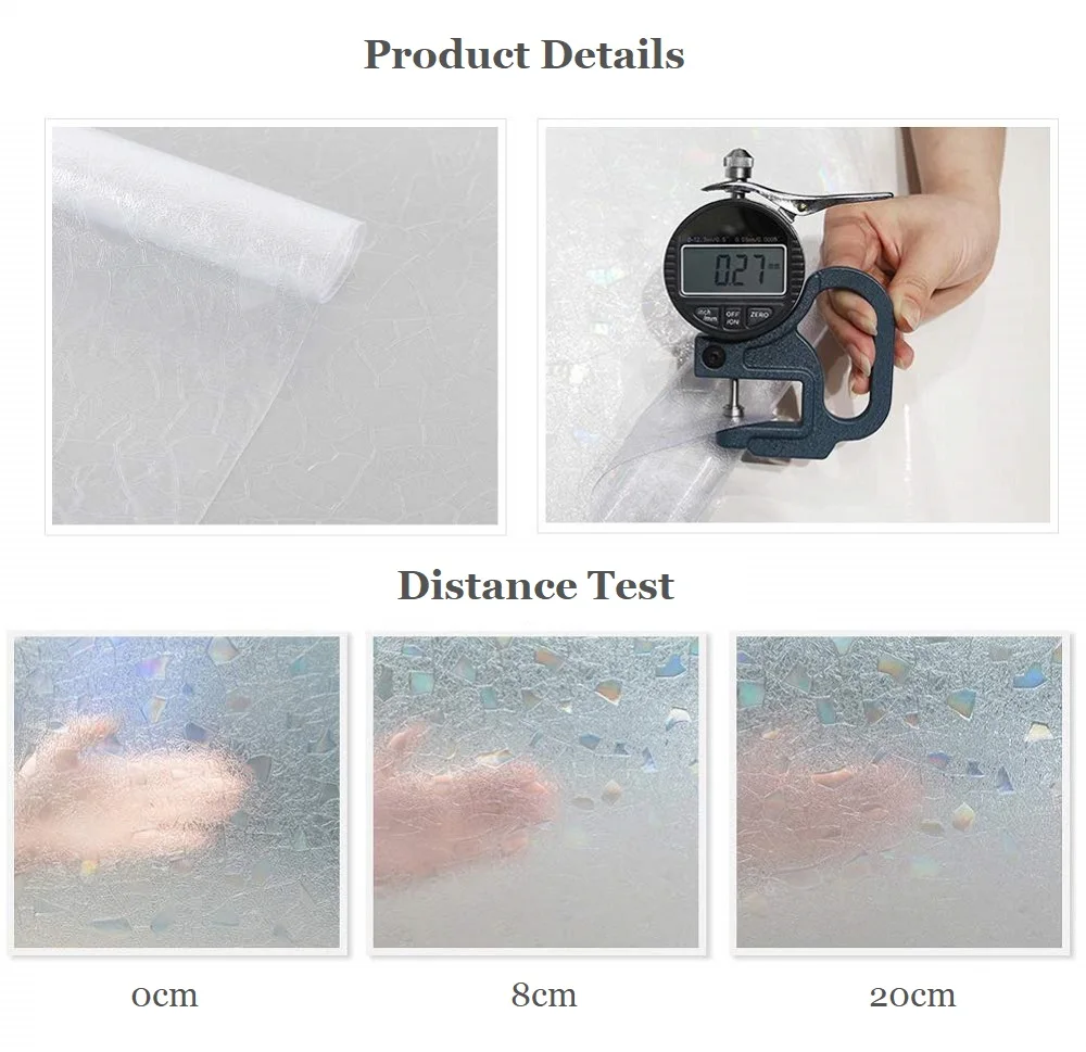 * Utilisation : il suffit de passer quelques minutes, d'utiliser beaucoup d'eau ou d'eau savonneuse sur le verre pour coller, enlever sans aucun, peut être utilisé de nombreuses fois. * Dimensions : environ 45 x 100 cm., Instructions d'installation : 1., Nettoyez soigneusement la cible., 2., Mesurez et coupez le film. Essuyez l'eau à l'aide de la serviette., 8., Coupez les marges. * Principe statique, pas de colle, ne libère aucune substance et respectueux de l'environnement. 45 X 200CM Film Fenêtre Statique Film Vitre Autocollant Film Occultant Film Fenetre Anti Regard Depoli Cuisine Bureau Salle De Bains 97078108 Couleur : conforme à l'image. * Conserve la chaleur en hiver et garde la chaleur à l'extérieur en été, économise de l'énergie, bloque 99 % * Parfait pour la chambre, le salon, la cuisine, la salle de bain et le bureau. Film de fenêtre statique dépoli blanc transparent 45x1000cm PVC vidaXL... Application sans adhésif : en utilisant des principes de l'électricité statique plutôt que de la colle, ce film s'applique en douceur sans laisser de trace lors du retrait – il suffit d'utiliser de l'eau ou de l'eau savonneuse pour le fixer, ce qui le rend réutilisable et respectueux de l'environnement pour de multiples applications. * Processus de production unique avec matériau PVC épais de 0,24 mm qui résiste à la chaleur et à la vapeur pour une qualité durable. Laissez une marge supplémentaire de chaque côté pour un ajustement facile., 3., Préparez suffisamment d'eau savonneuse diluée dans un flacon pulvérisateur., 4., Vaporisez avec de l'eau savonneuse., 5., Décollez le film protecteur transparent le long d'un côté court., 6., Installez le film sur le battant., 7., Utilisez la raclette pour enlever l'excès d'eau et les bulles lors de l'application du film. Film Vitre 45x100cm XQKXHZ Film De Confidentialité Statique En Vinyle 3D Pour Fenêtre, Film Fenêtre Anti Regard Décoratif Non Adhésif Anti UV,Film Opaque Vitrage Film Statique PVC 45x100cm Sans Colle Décoration d'intérieur polyvalente : mesurant 45 x 100 cm, ce film est adapté pour les chambres, les salons, les cuisines, les salles de bains et les espaces de bureau. Beautysaid Film d'intimité pour fenêtre en Verre dépoli avec... Protection de la vie privée : transformez vos fenêtres avec ce film 3D statique qui offre une excellente intimité tout en laissant passer la lumière naturelle du soleil – Parfait pour maintenir une atmosphère lumineuse dans votre maison tout en gardant les regards indiscrets à l'extérieur.