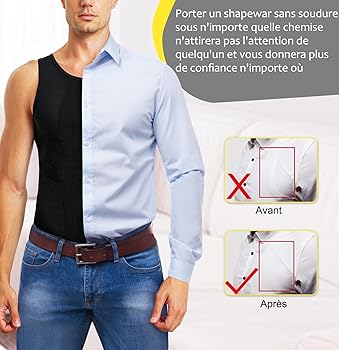 Parfait pour atténuerignées d ou un léger ventre plat homme, il s’adapte aux corps sportifs comme aux morphologies plus rondes. Ce maillot de corps homme reste invisible tout en maintenant une posture droite, idéal pour les réunions professionnelles ou les soirées élégantes. Le gaine homme travaille en douceur la sangle abdominale et soutient le dos, combinant confort et effet sculptant. Le debardeur gainant homme en maille haute densité affine la silhouette sans comprimer l’estomac, même assis. Slim'N Lift Débardeur Gainant Homme [Design Sans Coutures] : Le debardeur gainant adopte une construction sans coutures pour un rendu ultra-plat sous les sous chemises ou costumes. [Compression Ciblée & Silhouette Affinée] : Conçu pour sculpter la silhouette masculine, ce corset homme discret cible les zones récalcitrantes (poitrine, abdomen) grâce à sa compression intelligente. Ce débardeur gainant est spécialement conçu pour les hommes, pour vous redonner un ventre plat et ferme. Affinant le ventre et la taille, ce débardeur minceur... [Polyvalence Urbaine & Sportive] : Portez le debardeur gainant homme en couche base sous un blazer pour une silhouette affinée au travail, ou seul avec un jogging lors de votre séance de fitness. La technologie respirante évacue la transpiration lors du sport ou des journées actives, tout en offrant un effet ventre plat homme discret. [Modelage Sur Mesure] : Grâce à son mélange polyester-élasthanne, ce tshirt compression homme épouse naturellement les courbes sans serrer. Gaine Homme Ventre Plat Débardeur Gainant Homme | - Confort & Silhouette Affinée Débardeur Invisible Sous Chemise Tissu Confortable & Respirant] : Ce maillot de corps homme en 80% polyester et 20% élasthanne agitfilet élastique invisible épousant votre morphologie sans... Idéal pour ceux qui cherchent un contrôle léger mais efficace au quotidien.