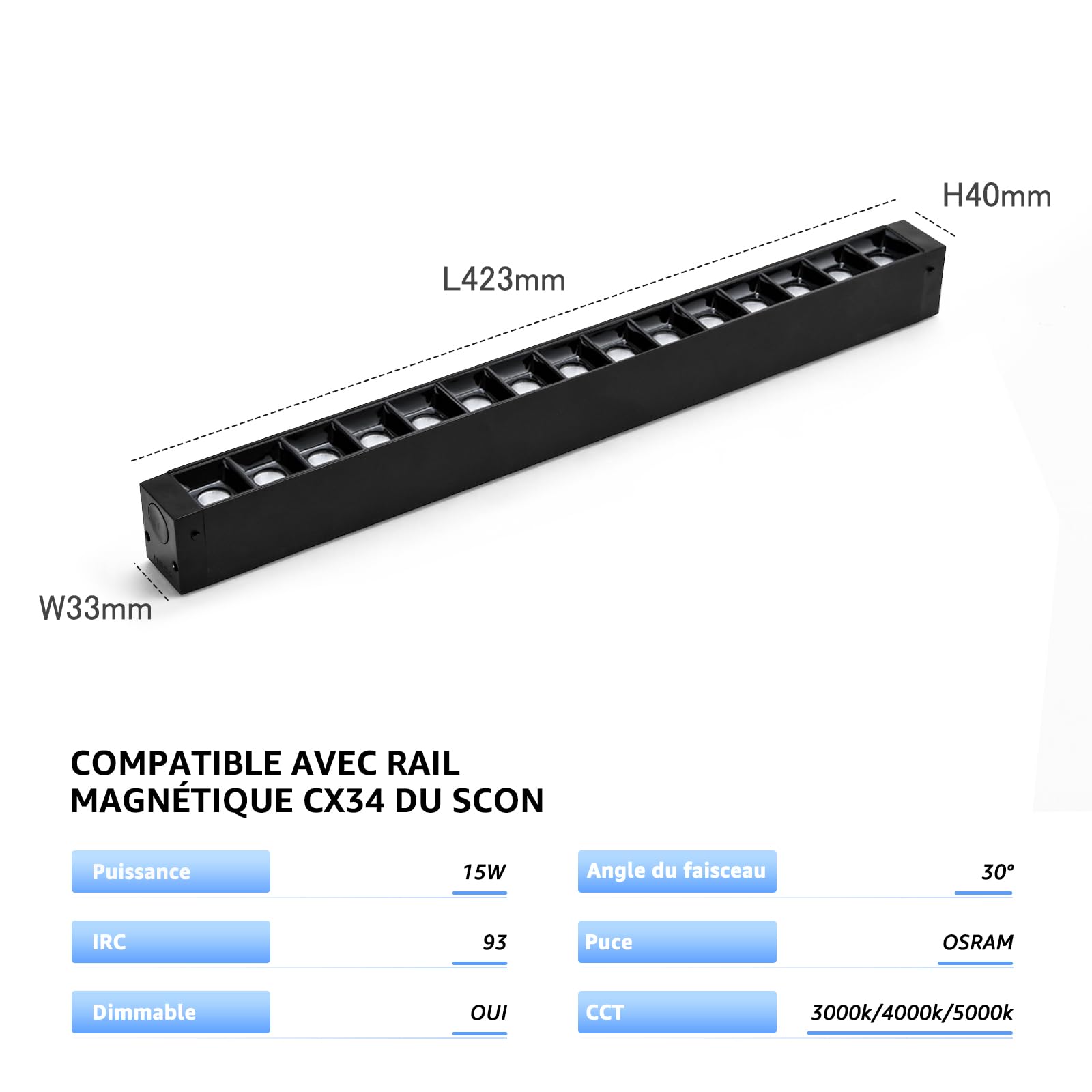 Aluminium Anodisé Connecteur D'Angle 4 Fils SCON Pour Rail Magn Tique 360137 【Pour rails magnétiques】Ces connecteurs vous permettront de connecter deux rails magnétique entre eux. Accessoire éclairage SILAMP Connecteur Angle Droit 90° Pour Rail Magnétique Extra Plat MM30 Accessoire Rail SILAMP 48V ATTENTION : Nous ne garantissons pas la compatibilité avec les Rails d'un autre fabricant. Un connecteur souple est fourni dans ce kit pour vous permettre de faire la connexion entre vos deux rails, les connecteurs n'étant pas dotés d'un circuit électrique Connecteur angle 90° pour Rail Triphasé NOIR, permet d'étendre votre éclairage LED sur Rail à la longueur que vous souhaitez, en constituant des... Un connecteur souple est fourni dans ce kit pour vous permettre de faire la connexion entre vos deux rails, les connecteurs n'étant pas dotés d'un circuit électrique. 【Indispensable】Si vous voulez connecter, créer de nouvelles formes avec vos rails magnétiques 48V, ces connecteurs seront indispensables. 【Silamp, expert de la technologie LED】Silamp est un expert de l'éclairage LED et vous propose des produits de qualité, tous garantis 2 ans ainsi qu'une livraison rapide. Des ailettes sont intégrées pour lui permettre de s'intégrer dans le rail. 【Installation】Vous n'avez qu'à faire glisser sa connectique dans le rail ainsi que le connecteur d'angle, visser et vos deux rails magnétiques sont reliés. Connecteur Angle 90° Pour Rail Magnétique Encastré Noir + Connecteur Souple est indispensable pour connecter deux rails magnétiques.