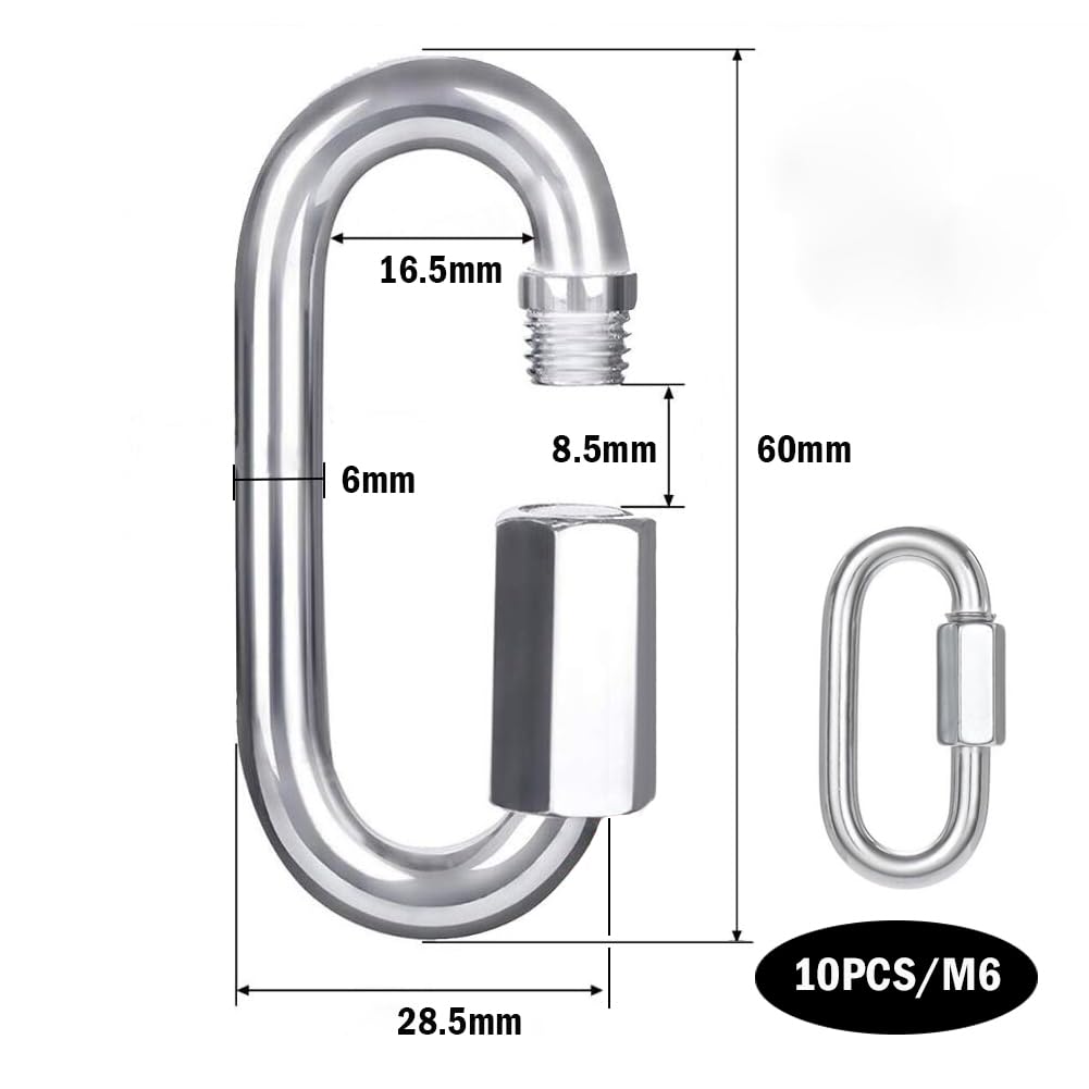 -) Votre satisfaction est notre priorité. 【Matériau de haute qualité】 Ce maillon rapide est fabriqué en acier inoxydable 304 de haute qualité, robuste et durable, antirouille et résistant à la corrosion, très résistant, peu déformable et doté d'une surface lisse et sans bavures. Cela empêche toute ouverture accidentelle du mousqueton en acier inoxydable et offre une capacité de charge très élevée, garantissant ainsi la sécurité lors de l'utilisation. ✿ CARACTÉRISTIQUES DU PRODUIT ✿ ◆ État : 100 % neuf ◆ Matériau : Acier inoxydable 304 ◆ Couleur : Argent ◆ Poids : 318 g ◆ Dimensions : 58 x 30 mm (longueur x largeur) ❀ CONTENU ❀ 10 x Maillon Rapide Inox M6 ♡ CONSEILS ♡ - En raison des différences de luminosité et de réglage de l'écran, la couleur de l'article peut être légèrement différente de celle des photos. Maillon rapide inox L36 x 3,5mm N'hésitez pas à nous contacter pour toute question., (^_^) Il suffit de les insérer dans le trou fileté et de les tourner pour les fixer en position. 12 Pcs Maillon 5-32 Pouces Mousqueton Robuste En Forme De D Maillons De... 【Facile à transporter】 Ce mousqueton à verrouillage à vis est compact et léger. ❤ CARACTÉRISTIQUES DU PRODUIT ❤ - Nos mousquetons à vis sont dotés d'un filetage et sont rapides et faciles à installer. 【Conception à verrouillage fileté】 Le maillons rapides est doté d'un écrou fileté. Vis M6 Inox JIT Connecteur à Maillon Rapide Mousqueton Fileté De Verrouillage De Mousqueton à Vis Inox 304 M6 Lot 10 Contenu de L'emballage]Vous recevrez 10 Robuste Maillon Rapide, longueur de 57 mm / 2,24 pouces, largeur 28 mm / 1,1 pouces, diamètre de fil 6 mm / 0,31 pouces, chaque Petite Vis Mousqueton peut supporter 110 kg pour la sécurité et le serrage 【Contenu de l'emballage】 Vous recevrez 10 connecteurs à vis en acier inoxydable M6, longueur 58 mm, largeur 30 mm, diamètre du fil 6 mm.