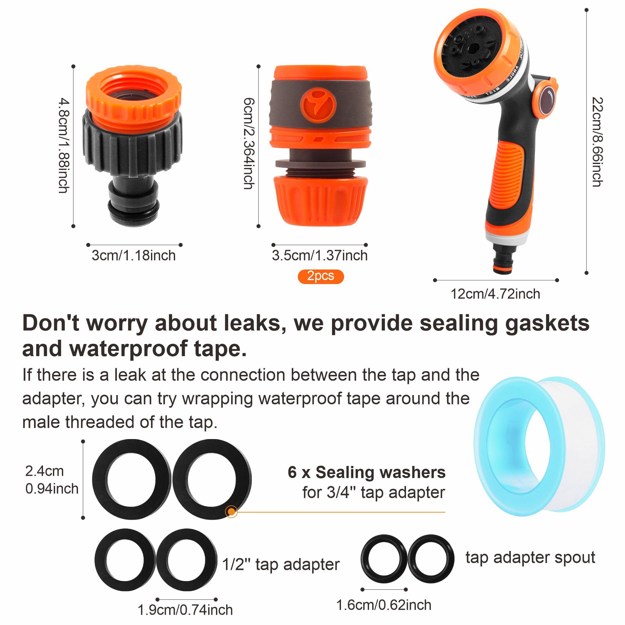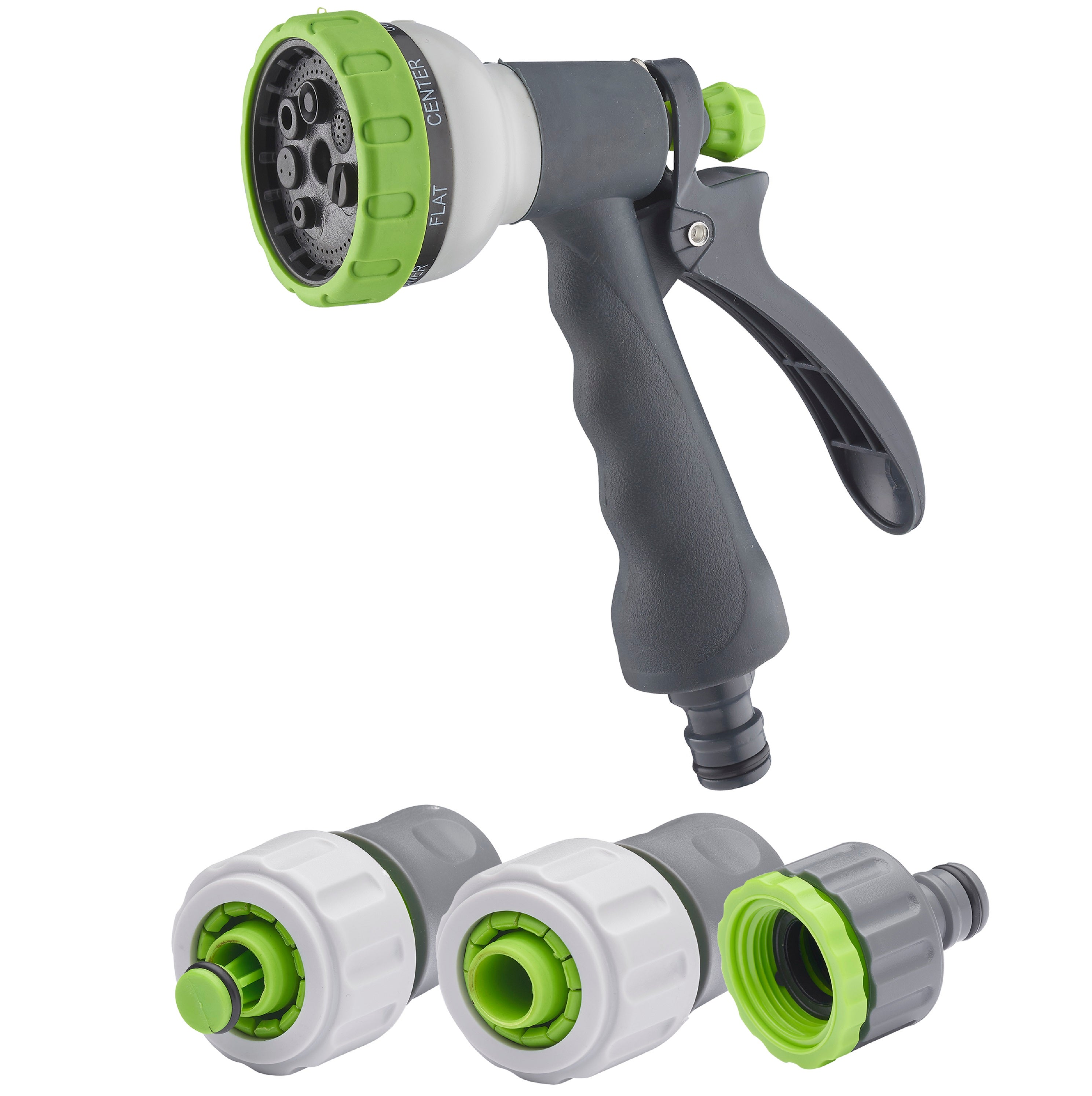Pistolet Nettoyage Voiture Pistolet D'arrosage Avec 3 Connecteurs Haute Pression Pour Le Lavage De Voiture Et D'animaux Domestiques, Arrosage Des Plantes, Nettoyage De Pelouse Et Jardin Kit Arrosage Haute Pression Pistolet d'arrosage multi-jet Buse de tuyau avec connecteurs Lot de 6 3 raccords robinets 1-2 ou 3-4... Contenu de l'emballage : 1 pistolet pulvérisateur de tuyau, 1 connecteur de robinet 2 en 1, 2 connecteurs de tuyau rapide, 1 ruban adhésif, 2 ensembles de bagues d'étanchéité. Matériau : ce pistolet d'arrosage est fabriqué en ABS et TPR de haute qualité. Plus durable et anti-fuite, il est plus confortable et antidérapant à tenir, juste un doigt pour régler le débit d'eau librement de faible à élevé. Applications : ce pistolet d'arrosage avec connecteurs de tuyau de robinet et raccords peut rapidement connecter votre tuyau d'arrosage et votre pistolet pulvérisateur. Pas besoin de vous soucier des fuites : nous fournissons des anneaux d'étanchéité et du ruban adhésif. 10 modes de pulvérisation réglables : ce pistolet d'arrosage dispose de 10 modes de pulvérisation différents (tête de pulvérisation rotative pour ajuster et changer le mode de pulvérisation), parfait pour l'arrosage de la pelouse, l'arrosage des plantes, le nettoyage de voiture, le bain des animaux domestiques. Ne vous inquiétez pas des fuites : nous fournissons des anneaux d'étanchéité et du ruban adhésif. Buse de tuyau d'arrosage, distributeur de savon et connecteurs rapides...