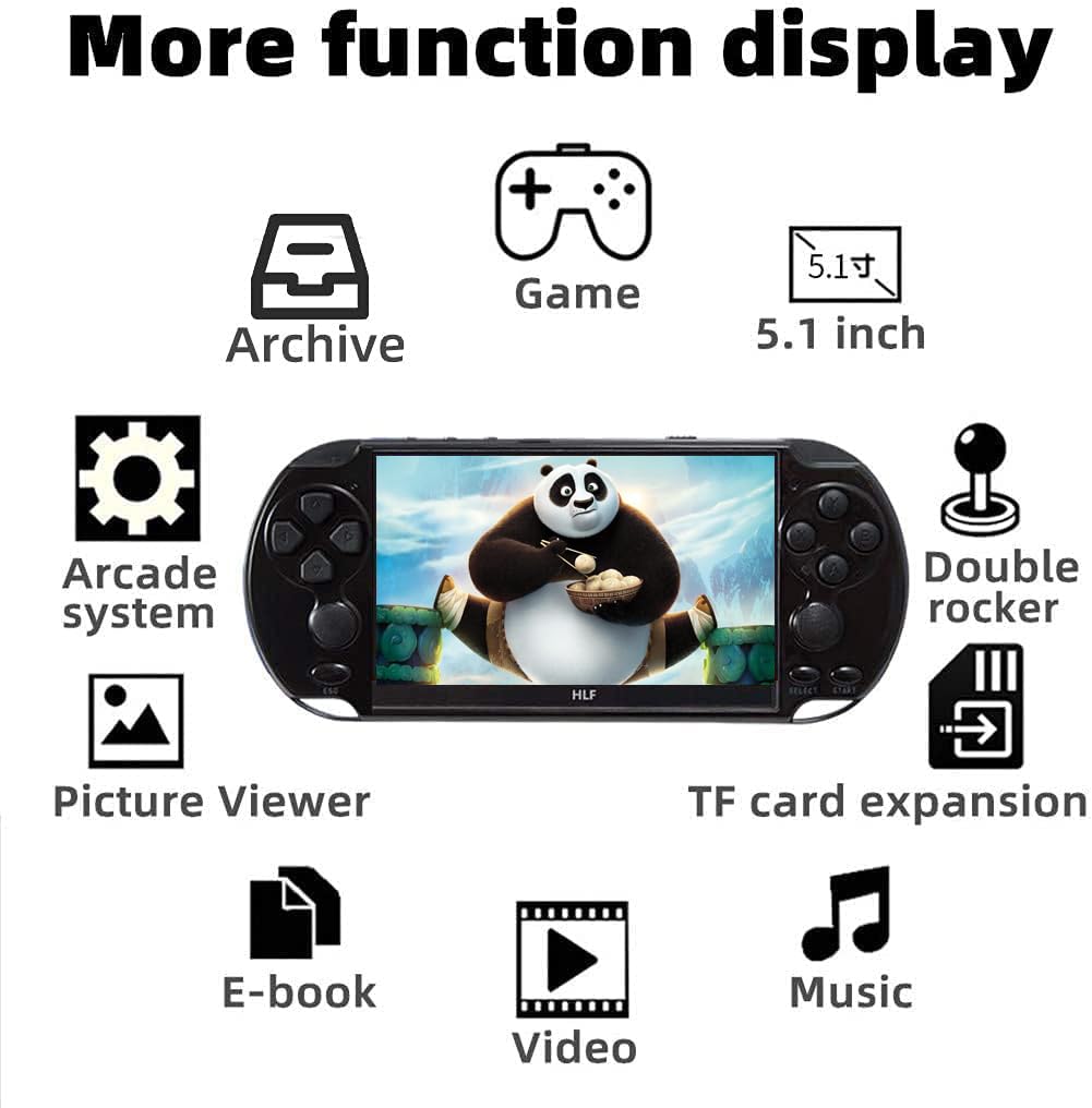 Partagez le plaisir du jeu avec votre famille, vos amis et vos camarades de classe. C'est aussi le cadeau idéal pour un anniversaire, des fêtes ou Noël, pour les enfants, les étudiants ou les petits amis. Description du produit Paramètres du produit : 1., Nom du produit : Console de jeu portable 5,1., 2., Écran : LCD 5,1 pouces., 3., Couleur : bleu-rouge, noir., 4., Nombre de jeux : 3800., 5., Simulateurs : Arcade/FBA/MAME/GBA/GBC/GB/FC/SFC/NES/MD., 6., Catégorie de jeu : Action/Combat/Sport/Tir/Course/Puzzle., 7., Mode de fonctionnement : Contrôle par touches., 8., Sortie TV : AV-OUT., 9., Matériau : Plastique., 10., Capacité de la batterie : 2000 mAh., 11., Interface de chargement : Micro USB., 12., Langue du menu : Anglais/Allemand/Français/Italien/Espagnol/Russe/Japonais/Coréen et 29 autres langues. Produit Accessoires Console de jeu + câble de chargement USB + manuel + casque Dimensions du produit : 19,5 x 8,5 x 1,8 cm ; 7,68 x 3,35 x 0,71 po Poids du produit : 190 g Dimensions du carton : 20,5 x 10 x 6,3 cm Poids à l'expédition : 350 g Avertissement De Sûreté Veuillez éviter de jouer à des jeux pendant une longue période ; en cas d'inutilisation prolongée, veuillez retirer la batterie. Console Batterie 2000mAh LZYCH 5,1 Pouces Console De Jeu Portable Plusieurs Simulateurs Rétro Console Retro Rgb10 Pro Outre les jeux, elle offre de nombreuses autres fonctionnalités de divertissement. Que ce soit à l'intérieur, à l'extérieur ou en voyage, profitez d'une expérience de jeu divertissante. Outre les jeux, elle prend également en charge les vidéos, la musique et les livres numériques, ce qui en fait un outil idéal pour tuer le temps. Elle dispose également de fonctions d'enregistrement, de chronomètre, de calculatrice et de calendrier. TAQY 5,1 Pouces Console de Jeux vidéo Plusieurs simulateurs Chaque émulateur intègre des jeux classiques. Les joueurs peuvent jouer dès l'allumage de la console. Poids/dimensions du produit avec emballage : 350 g/20,5 x 10 x 6,3 cm ; 0,77 lb/8,1 x 3,94 x 2,48 po. Jouez à des jeux et regardez des vidéos sur le téléviseur avec des graphismes époustouflants. Ozvavzk Console Retrogaming 2025 Mise à Niveau 4K Console de Jeux Portable avec 20.000 Jeux Vidéo Classiques, 2 Manettes Sans Fil, Plug & Play HDMI TV... Console de jeu portable rétro Console de Jeu Portable, écran IPS 3,5... Jeux classiques et nostalgiques intégrés : Plus de 3800 jeux couvrant un large éventail de genres, dont l'action, le combat, le sport, le tir, la course et les puzzles. Si vous ne pouvez pas continuer en raison d'une batterie faible ou pour toute autre raison, appuyez sur la touche « Échap » pour afficher le menu des paramètres du jeu, où vous pouvez sauvegarder, charger, mettre en pause ou quitter la partie. Cette console prend en charge les sauvegardes instantanées. Sortie TV : Connectez la console à un téléviseur via un câble AV, transformant ainsi le petit écran en grand. Riches fonctionnalités de divertissement ; batterie au lithium intégrée. Sauvegarde instantanée des jeux.