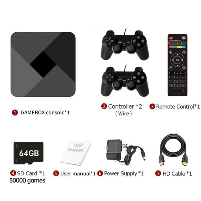 Dépannage : si vous rencontrez des ralentissements, des erreurs d'affichage ou des problèmes de stockage, contactez immédiatement notre service clientèle, qui résoudra rapidement votre problème. Cette puissante combinaison matérielle fonctionne de manière transparente pour gérer sans effort divers jeux d'émulation 64g avec boîte - G11 Pro Game Box Console de jeu vidéo, 256 Go, 60000... Nous offrons un service de retour d'un mois, un remboursement à tout moment si vous n'êtes pas satisfait, une garantie à vie sans souci, une réponse et une résolution du problème dans les 12 heures. Nettoyez la surface avec un chiffon sec et doux, en évitant les produits chimiques agressifs. Elle fonctionne avec les téléviseurs, PC et projecteurs récents ou anciens, et se connecte facilement à divers écrans via HDMI pour répondre à divers besoins d'utilisation. C'est le mélange parfait entre nostalgie, commodité et technologie moderne pour des heures de plaisir en famille. Capacité de stockage : 64 Go Nombre de jeux : plus de 30 000 Type : manette de jeu pour téléviseur Processeur : quadricœur N8 64 bits (puce quadricœur haute performance) Processeur graphique : DDR4 2 Go Sortie : HDMI 4K 1080p Alimentation : 5 V 1 A (nécessite au moins 1 A) Extension de mémoire : extensible jusqu'à 256 Go maximum Émulateurs de jeux : 52 émulateurs Caractéristiques : le système intégré prend en charge la prévisualisation des jeux, la recherche, les signets, la sauvegarde/le chargement de la progression, les commandes personnalisables et l'extension ROM. Console M22-u 30000 Jeux 4k Manettes Sans Fil Console De Jeux Vidéo Rétro M22 Game Stick 64 Go Avec Manette Sans Fil, 4K HD, 30 000 Jeux Intégrés, Cadeau De Noël Stick TV 4K Manettes Sans Fil De plus, elles sont équipées de joysticks sensibles à haute précision à 360° pour un réglage précis des angles les plus infimes. 64g 30000 jeux - Console de jeux vidéo rétro avec manette sans fil, TV... De plus, elle permet le multijoueur à 4 joueurs sur le même écran, vous faisant partager le plaisir avec famille et amis Puce quadricœur haute performance & RAM efficace : cette console de jeux rétro est équipée d'un processeur quadricœur N8 64 bits, offrant des vitesses de traitement rapides et de solides capacités multitâches pour des performances de jeu stables et puissantes. Gardez la console propre en utilisant un chiffon doux et sec. 64g avec boîte - G11 Pro Game Box Console de jeu vidéo, 256 Go, 60000 Deux manettes sans fil avec joysticks sensibles & boutons à faible latence : cette manette de jeu 4K est livrée avec deux contrôleurs sans fil 2,4 GHz intégrés. Remarques importantes et conseils d'entretien Avertissement système : cette manette de jeu 4K ne prend PAS en charge les modifications, mises à jour ou actualisations du système initiées par l'utilisateur. Elle prend également en charge les boutons personnalisables et l’extension ROM pour répondre aux besoins de jeu individuels. Sortie HD 4K/1080P & compatibilité avec plusieurs appareils : la console rétro prend en charge une double résolution de sortie 4K Ultra HD et 1080p HD, offrant des détails d'image nets et clairs et reproduisant les effets visuels délicats des jeux classiques. Si vous rencontrez des problèmes lors de l'utilisation, vous pouvez nous contacter à tout moment et nous les résoudrons pour vous dans les plus brefs délais Poids unitaire : 0,51 kg Dimensions unitaires : 24 x 18 x 7 cm Avertissement De Sûreté Évitez d'exposer la console à des températures extrêmes ou à la lumière directe du soleil pendant de longues périodes, car cela pourrait affecter les performances et la durée de vie de l'appareil. Autres paramètres : prend en charge les manettes filaires, les manettes sans fil 2,4 G et les consoles à joystick 2,4 G. Évitez d'utiliser des produits chimiques agressifs qui pourraient endommager l'écran ou le corps de la console. Entretien : gardez la console de jeu portable et les manettes à l'abri de l'eau, de la poussière et des températures extrêmes. Qu'il s'agisse de contrôles directionnels ou d'opérations basées sur l'action, elles répondent avec précision , !, !