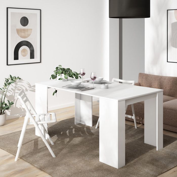 Table Rallonges 90 à 180cm Table Extensible Skraut Home - Table Console Extensible, Console Meuble, 140, Pour 6 Personnes, Pieds Bois Massif, Style Moderne, Chêne TV Cheminée Console Extensible Skraut Console Extensible Table Skraut Home - Chêne Moderne - Jusqu'à 14 Personnes - 90-302cm Console Table Extensible Console extensible Rodella, Console auxiliaire extensible multi-positions, Table à manger... La table comprend des mécanismes d'ancrage qui fixent et sécurisent l'ensemble dans chacune des positions et empêchent toute ouverture involontaire. Console finition en blanc mat de haute qualité. Longueur variable: avec une rallonge 119 cm, avec deux rallonges 180 cm. Description du produit La table console extensible Skraut Home est une console et une table de salle à manger extensible pratique avec plusieurs positions de montage. Rallonges en bois finition blanc mat de haute qualité. Avertissement De Sûreté Attention: Risque de pincement avec le mécanisme télescopique. Assurez-vous d'installer et d'ancrer correctement la table pour éviter tout risque de basculement. Mesa de comedor Skraut Home en varios acabados