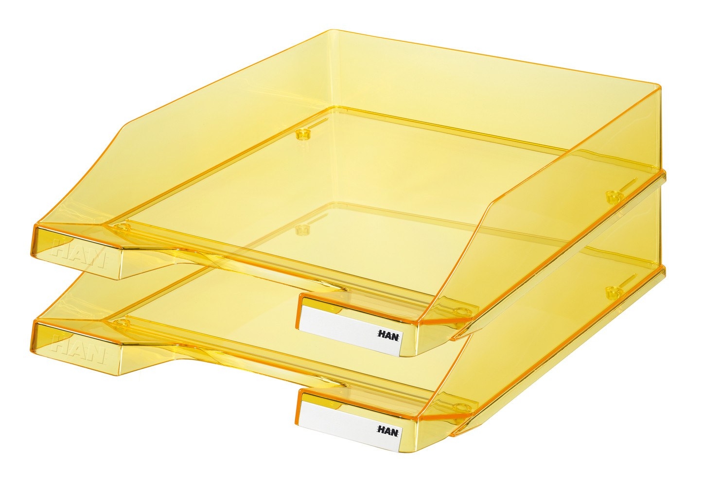 QUIMPERLE BURO SARL | CORBEILLE À COURRIER CEP POLYSTYRÈNE SUPERPOSABLE VERTICALE/ESCALIER L'avant légèrement oblique de la corbeille à courrier empêche les documents de glisser et d'en sortir. Corbeille Bureau Cristal Wave Corbeille à Courrier Transparent | Contact EDIMETA - Présentoirs Et PLV Corbeille A4 C4 Empilable HAN Empilage vertical ou en décalé. HAN Corbeille à courrier WAVE EXCLUSIV, A4, transparent polystyrène, pour formats A4 à C4, empilable verticalement ou en décalé, large encoche de préhension, patins de pro- tection des meubles, dimensions: (L)255 x (P)350 x (H)66 mm en paquet de 5 pièces (1028-23 HAN HA 1026 X 24 Corbeille à courrier A4 standard gris transparent... Style puriste marqué, pour conférer une note très particulière au poste de travail. (l x p x h): 255 x 350 x 66 mm. Utilisable pour les formats papier: DIN A4/C4., Antidérapant grâce à des patins en caoutchouc protégeant les meubles. Design harmonieux mêlé d'un soupçon d'élégance: l'association parfaite de l'esthétique, de la fonctionnalité et de la qualité. Matériau: matière plastique de qualité supérieure, polystyrène (PS)., Couleur: cristal transparent Corbeille à courrier WAVE EXCLUSIV, DIN A4/C4., Style puriste marqué pour conférer une note très particulière au poste de travail.