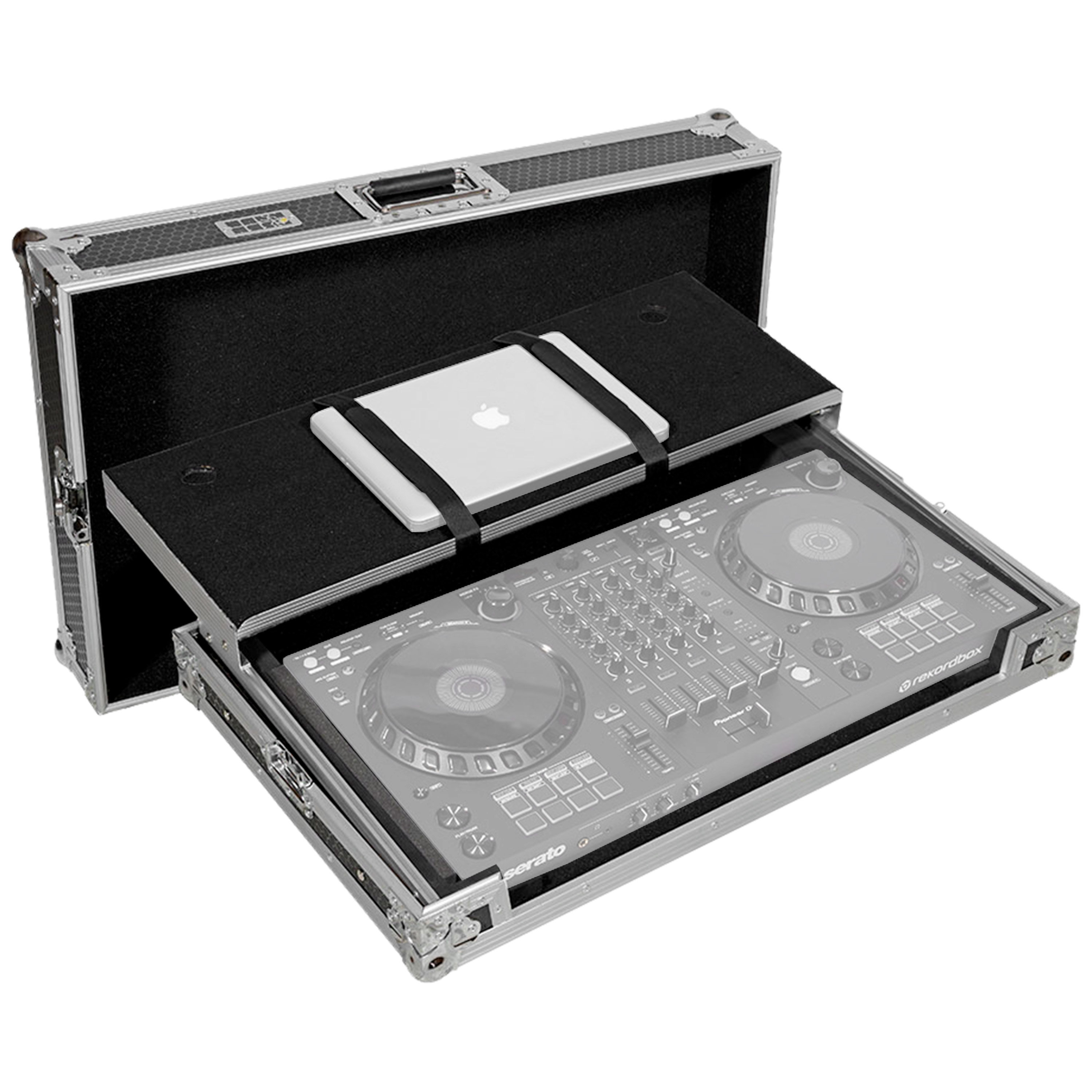 - Porte d'accès frontale- Deux profilés en aluminium massif- Fermeture papillon x 2- Poignée professionnelle encastrée dans le panneau et équipée de ressorts x 1- Pieds en caoutchouc de qualité industrielle x 4- Support d'ordinateur portable mobile et amovible avec deux passages pour les câbles, rayon 40mm- Dimensions extérieures : 802 x 529 x 201 mm- Dimensions intérieures: 716 x 490 x 120 mm Walkasse Pro Maschine Kontrol W LTS Silver - Flight Contrôleur USB Une poignée trolley télescopique et des roulettes de transport sont incluses, facilitant le transport de l'ensemble du système. Coffre Protection Mousse épaisse DJ Flight Case Pour Contrôleur DJ Walkasse Pro DDJ-FLX10 LTS étui Multiplis 9 Mm Mousse Protection - Flight case sur mesure pour DDJ-FLX-10 de Pioneer DJ- Livré sans contrôleur ou câble- Finition extérieure hexagonale en nid d'abeille extradurable pour l'adhérence à la scène., - Coins à boules empilables. [Sécurité Renforcée] La sécurité ne doit jamais être compromise, et ce flight case répond à cet impératif avec brio. Le Flight case sur mesure Walkasse pour DDJ-FLX-10 de Pioneer DJ est un écrin de protection haut de gamme pour votre contrôleur DJ. Doté d'une finition extérieure en nid d'abeille, de coins empilables et d'une porte d'accès frontale, il offre une robustesse et une praticité inégalées. Un support pour ordinateur portable et des dimensions ajustées complètent cet indispensable pour DJ... Les blocs de mousse de calage fournis assurent que votre équipement reste immobile pendant le transport. [Construction Robuste et Design Sophistiqué] Le Walkasse Pro DDJ-FLX10 LTS Silver n'est pas un simple étui pour votre équipement DJ; c'est une forteresse mobile pour vos appareils DJ. Pro DDJ-FLX6 LTS Black Walkasse Ajoutez à cela des pieds en caoutchouc de qualité industrielle, et vous avez une base solide et fiable pour votre équipement. Les coins boules empilables et les serrures papillon fournissent une sécurité supplémentaire pendant le stockage ou le transport. BAGAGE LIVRÉ NU SANS CONTROLEUR DJ, NI ORDINATEUR. Flight case de transport pour le DDJ-FLX10 Pioneer DJ. Dimensions extérieures : 802 x 529 x 201 mm