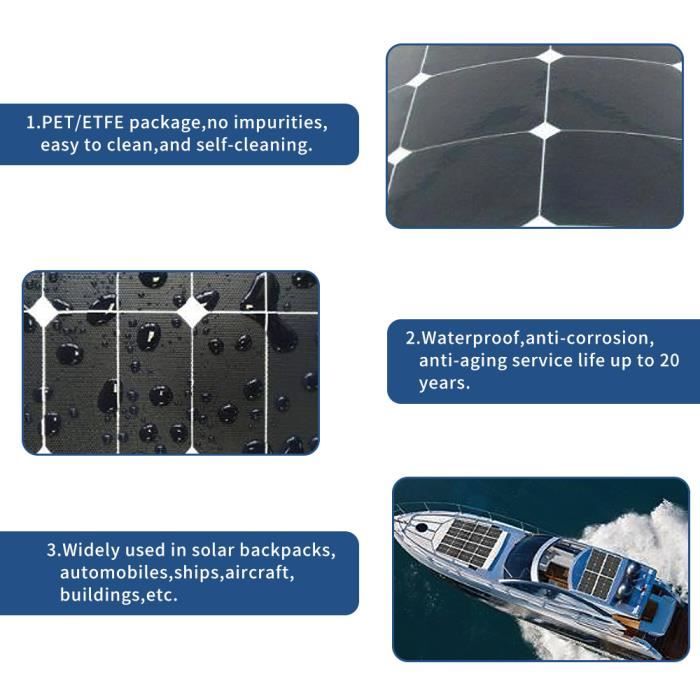 Il permet une recharge à tout moment, même en cas de coupure de courant. Pour caravanes, rv, bateaux, remorques, etc. Son voyant LED de fonctionnement s'allume en vert en cas de fonctionnement normal et en rouge en cas de sous-tension, de haute tension, de surchauffe ou de surcharge. Il est alimenté par un câble CC et des pinces crocodiles CC. Kit De Panneaux Solaires 400W avec Onduleur, Panneau Solaire 18W Et 【ONDULEUR 400W】Doté de deux ports USB et d'une prise secteur, il peut être utilisé comme convertisseur de courant pour voiture, adaptateur allume-cigare, alimentation extérieure, alimentation domestique en cas de panne de courant, etc. CARACTÉRISTIQUESONDULEUR 400 WTension d'entrée : 10,5 V/15 VTension de sortie : 110/220 VPuissance nominale : 400 WForme d'onde de sortie : Onde sinusoïdale modifiéePARAMÈTRES DU CONTRÔLEUR SOLAIRECourant de charge : 30 ADimensions : 148 × 78 × 35 mmTension : Conversion automatique CC 12 VAffichage : LCD numériquePort de charge USB : Double USB 5 V 2,1 ATempérature de fonctionnement : -35 - 40 ℃Entrée solaire maximale : Batterie 12 V, jusqu'à 23 VSortie USB : 2 sorties USB, 5 V/2,5 A (max. Kit Panneau Solaire Camping Car 400 W, Panneau Solaire Flexible 18W18V Contrôleur 30 a Onduleur, pour Camping-Car, Bateau, Tente, Voiture, Remorque Black... Nous offrons une expérience d'achat agréable. Le kit de panneaux solaires est idéal pour les maisons, les abris de jardin, les chalets, les camping-cars et autres lieux publics. 【PROTECTIONS MULTIPLES】Ce kit éolien solaire est très sûr à utiliser et dispose d'un puissant indicateur de rappel. Onduleur 400W Sinus Modifié Panneau Solaire Flexible (60 W/120 W/180 W/240 W), Installation Facile + Contrôleur De Charge 20 A, Kit De Panneau Solaire 12 V, Pour Jardin, Hangar, Bateau, Voiture, Camping-Car Contrôleur Solaire 30A LCD Panneau solaire camping car 400w : la sélection produits Leroy Merlin de ce mardi au meilleur prix ! Retrouvez ci-après nos 193 offres, marques, références et promotions en stock prêtes à être livrées rapidement dans nos magasins les plus proches de chez vous 【SERVICE APRÈS-VENTE】Génère 1kwh d'électricité par jour sous 4 heures d'ensoleillement, ce qui permet de recharger complètement une batterie 12 v.