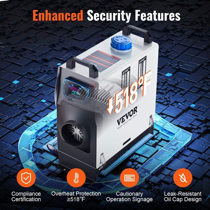 VEVOR Chauffage Diesel 8 kW DC 12 V/24 V, Réchauffeur d'Air Diesel pour Stationnement, Tout-en-Un Portable, avec Télécommande et Écran LCD, Réservoir de Carburant 4,5 L, pour Camion Camping-car Il prend en charge les modèles VEVOR XMZ-TB20, XMZ-TB40, XMZ-TB30, XMZ-TB20 Pro, XMZ-F-D, XMZ-W-D, XMZ-L-D et XMZ-HTB1., Caractéristiques : Nom de la pièce : contrôleur de chauffage à air diesel., Matériau : ABS., Dimensions : voir photo., Couleur : voir photo. Contrôleur Pour Chauffage XMZ Contrôleur De Chauffage Diesel DC 5 V, Kit De Panneau De Commande Pour Réchauffeur De Stationnement 2 KW/5 KW/8 KW, Avec Écran LCD Et Télécommande, Pièce De Remplacement Pour Entretien | FR Chauffage Diesel 8kw *Processus d'installation simple : la configuration ne nécessite que quatre étapes simples, permettant une installation rapide et un minimum de temps d'arrêt, de sorte que vous pouvez mettre votre système de chauffage en fonctionnement en aucun cas * Ensemble complet de contrôle de chauffage : ce kit de contrôleur de chauffage de stationnement comprend 1 écran LCD et 1 télécommande, servant de remplacement fiable compatible avec la plupart des chauffages diesel de 2 KW, 5 kW et 8 kW. Hcalory Chauffages de Chaufferettes - Régulateur de Température -5-8KW... Chauffage à air diesel Réchauffeur d'air Diesel 12V-24V 6-8.5 kw sortie... Écran LCD convivial : l'écran LCD transparent améliore la visibilité des données de fonctionnement et des paramètres, ce qui le rend facile à utiliser même dans des environnements à faible luminosité. Ensemble complet de contrôle du chauffage : ce kit comprend 1 écran LCD et 1 télécommande, conçu pour être compatible avec la plupart des chauffages diesel de 2 KW, 5 kW et 8 kW, options de chauffage pour votre véhicule. Construction robuste : fabriqué à partir de matériau ABS, ce contrôleur est conçu pour résister à des températures difficiles entre -30 °C et 40 °C, performance fiable dans des conditions hivernales extrêmes. * Commodité de la télécommande : la télécommande 433 MHz incluse vous permet de contrôler votre chauffage jusqu'à 9,84 ft3 m de distance, vous offrant la flexibilité de faire fonctionner votre chauffage sans être physiquement présent. Télécommande pratique : la télécommande de 433 MHz permet un fonctionnement jusqu'à 25,6 m de distance, vous donnant la flexibilité de régler votre chauffage sans avoir besoin d'être sur place. Caractéristiques : *Compatibilité polyvalente : ce contrôleur de chauffage d'air diesel est conçu pour s'adapter à la plupart des chauffages diesel de 2 KW, 5 kW et 8 kW.