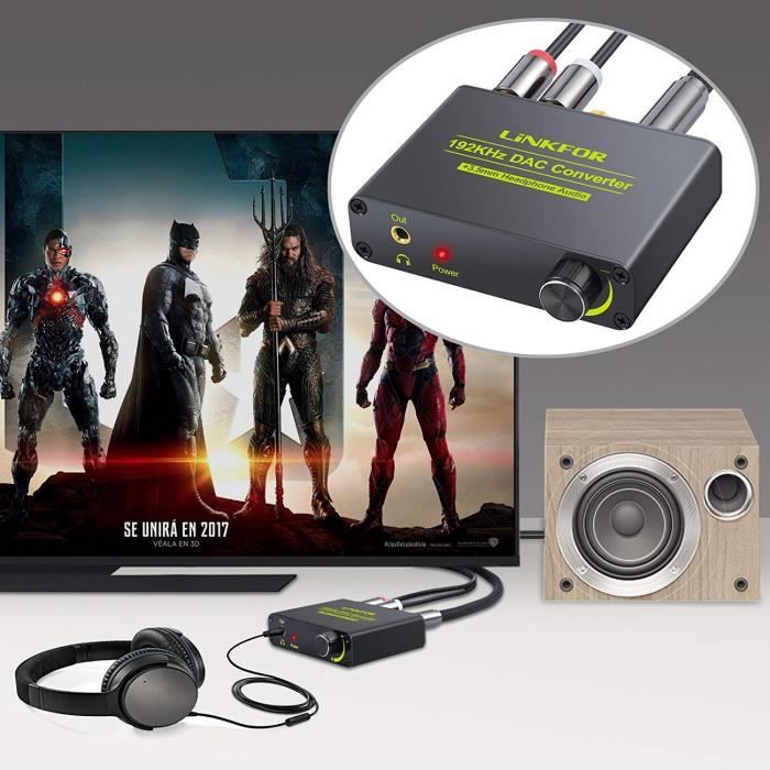 DAC 192kHz SPDIF Toslink Convertisseur DAC Audio 192kHz - SPDIF Toslink Vers RCA - Pour TV, DVD, Console - Plug & Play Optique Vers Rca CX31993 USB TYPE C DAC Ampli Casque Bleu avec Sortie 3.5Mm SNR128DB PCM... Adaptateur Peritel Hdmi Convertisseur Audio Numerique Analogique LiNKFOR Convertisseur DAC 192 KHz Numérique Vers Analogique Hdmi Arc Audio Dac Optique 192khz Pour Tv Conversion Numérique-Analogique Haute Fidélité:Convertit les signaux optiques SPDIF en audio analogique 3., 5mm stéréo. Design Ultra-Compact:Boîtier ABS léger (83x52x38mm) avec câbles intégrés. LiNKFOR Convertisseur HDI vers SCART en Aluiniu avec Câble Péritel 1... Solution idéale pour les utilisateurs malentendants ou âgés nécessitant un son plus puissant Installation discrète derrière la TV sans encombrement d'espace Optimisé pour Écouteurs et Enceintes:Parfait pour connecter casques sans fil TV, enceintes Bose ou PC. Compatibilité Universelle Plug and Play:Fonctionne avec TV, box, DVD/Blu-ray et consoles.