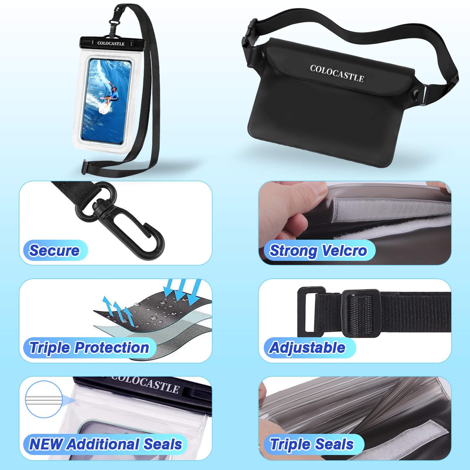 Sacoche étanche Sports Nautiques Kit étanche 2 En 1 Ivoler Accès facile à l'appareil photo, aux appels et à d'autres fonctions. Sac Plage Waterproof Sac Banane étanche, Coque De Téléphone, Housse De Protection Pour Sports Nautiques Sports Nautiques étanche DESIGN HD AVEC ÉCRAN TOUCHABLE : grâce à l'étui transparent et étanche, vous pouvez utiliser l'écran tactile de votre téléphone à tout moment. Pack De 2] Pochette Étanche Téléphone [Certifiée Ipx8] Etui-Housse... 100 % étanche : l'étui et le téléphone portable sont étanches selon la norme IPX8 et peuvent rester immergés jusqu'à 10 mètres pendant une heure. Avec un... LONGUEUR RÉGLABLE : l'étui étanche et la housse étanche pour téléphone portable sont tous deux fournis avec une sangle réglable, et le porte-clés est équipé d'une fermeture de sécurité, ce qui vous permet de l'accrocher confortablement à votre poitrine ou de le porter en diagonale comme un petit sac. Étanche jusqu'à 30 mètres. UTILISATION POLYVALENTE : avec cet étui étanche pour téléphone portable, vous pouvez non seulement profiter d'activités en plein air comme la plongée en apnée, le kayak, le bateau, la natation, le beach-volley, le surf et le ski, mais aussi l'utiliser à la maison dans la salle de bain ou dans la cuisine. COMPATIBILITÉ ENVIRONNÉE : le paquet contient un sac étanche et une poche étanche. L'étui noir étanche protège votre vie privée. Protégez votre téléphone ou d'autres objets de valeur contre l'eau, la saleté, la poussière, la boue et la neige.