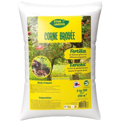 Sa composition riche en Azote (NPK 13-0-0) stimule fortement le développement végétatif et racinaire. 🐛 ACTIVITÉ BIOLOGIQUE ACCRUE : Stimule naturellement la vie microbienne du sol. Corne Broyée ou Engrais Équilibré* ? Lequel choisir ? Optimisez vos fertilisations tout au long de l'année ! Ce calendrier pratique vous guide dans l’utilisation optimale de la corne broyée et de l'engrais équilibré Solu’Control selon les saisons. Entretien : 100 à 200 g/arbre, 2 fois/an. Disponible en sachet refermable de 80 g, 500 g, 1,5 kg, 3 kg Engrais Azoté Naturel Agriculture Biologique 3 Kg Corne Broyée En Copeaux SoluControl-Engrais Azoté Engrais Sang Séché Et Corne Broyée Cuxin Engrais Spécial pour Laurier-Cerise 3 KG Cerise Laurier Heckenkirsche eBay 💧 OPTIMISATION DE L’EAU : Améliore durablement la rétention d’eau dans le sol. 🌱 ÉQUILIBRE PARFAIT : Fertilisation équilibrée combinant action rapide et libération lente. Ce format en granulés, facile à doser, stimule fortement l’enracinement et favorise une croissance régulière tout en améliorant durablement la qualité du sol. Corne broyée en pellet : fertilisation longue durée et enracinement profond La Corne Broyée en pellet offre une libération lente et prolongée d'azote naturel, idéale pour les arbres fruitiers, arbustes, gazon et cultures maraîchères. 📐 COPEAUX FACILES À ÉPANDRE : Application pratique et homogène sur toutes les surfaces. Massifs Fleuris et Plantes d'Ornement Plantation : mélangez 150 à 250 g/m² uniformément à la terre avant plantation. 🌳 IDÉAL POUR ARBUSTES ET HAIES : Stimule une croissance végétative robuste et durable. Disponible en sachet refermable de 500 g, 1,5 kg, 3 kg • Matière organique (85 %) : Améliore durablement la structure du sol, favorise la vie microbienne et augmente la capacité de rétention d’eau. Poudre : Effet rapide, parfaite pour semis, rempotage, jeunes plants, et cultures en pots. Engrais 100 % naturel utilisable en Agriculture Biologique, conforme au règlement européen (UE) 2018/848., Origine France garantie : cornes et sabots issus exclusivement d’élevages bovins français, assurant une qualité optimale et une traçabilité rigoureuse. Mélanger directement à la terre du trou de plantation. Gazon Avant semis : répartissez 150 à 200 g/m², incorporez légèrement puis arrosez. Sa taille intermédiaire est particulièrement adaptée aux plantations et à l’entretien des arbustes, haies et massifs fleuris. Associez intelligemment vos engrais pour un jardin florissant Durant l’été, l’engrais équilibré apporte un véritable coup de pouce à la croissance végétative, à la floraison et à la fructification. Profitez des qualités exceptionnelles de la corne broyée pour renforcer l’enracinement au printemps et à l'automne, moments-clés pour garantir la vigueur et la pérennité de vos plantations. Massifs et Potagers A la plantation 150 à 250 g/m². Une Corne Broyée en poudre, en copeaux ou en pellet Des plantations réussies et durables Utilisez la Corne Broyée Solu'Control dès la plantation des arbres fruitiers, arbustes, haies, massifs fleuris, ou pour la préparation du potager et des semis. Gazon (Plantation et Entretien) Avant semis : répartissez 150 à 200 g/m², incorporez légèrement puis arrosez. Son action durable enrichit progressivement le sol, favorise l'enracinement et garantit une croissance saine et vigoureuse tout au long de la saison. 🌱 REMPOTAGE FACILITÉ : Convient parfaitement aux plantes vertes et rempotages en pots. Arbres adultes : répartissez 300 à 500 g autour du tronc à 20-40 cm. Un entretien naturel toute l’année Choisissez le format adapté (pellets, poudre ou copeaux) pour une fertilisation sur mesure, efficace et respectueuse de l'environnement tout au long de l'année. 🏅 QUALITÉ FRANÇAISE PREMIUM : Produit en France, sélection rigoureuse et traçabilité assurée. Entretien annuel : épandez 80 à 120 g/m² sur gazon existant, évitez les amas et arrosez légèrement après application. Incorporez légèrement en surface puis arrosez modérément. Grâce à ses trois présentations (pellets, poudre, copeaux), elle répond précisément aux besoins de chaque plante : enracinement renforcé, croissance équilibrée, floraison abondante et fertilisation durable du sol. Entretien : épandez 100 à 200 g/m² en surface, incorporez légèrement et arrosez. La Corne Broyée en Copeaux Solu'Control est un engrais organique de qualité supérieure, issu exclusivement de cornes et sabots bovins collectés en France. Sa forme en copeaux offre une fertilisation équilibrée, combinant action rapide et libération progressive, adaptée aux arbustes, haies et massifs fleuris