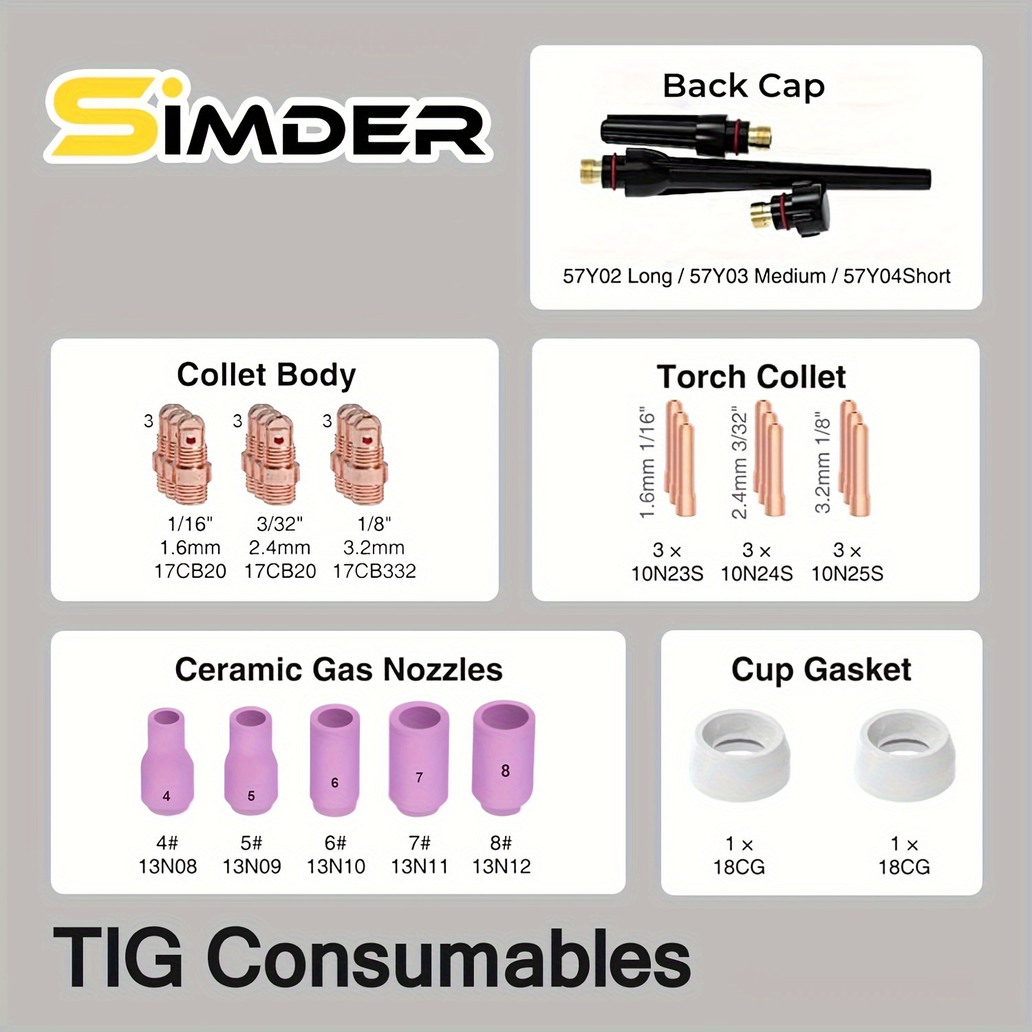2 SUPPORTS COLLET DIFFUSEUR POUR SR17 / 18/ 26 - GYS -REF - 045057... 2pcs 1,6 mm 10n23s Collier de serrage Tig et 1pcs 17GL116 1,6 mm lentille à gaz tronquée 1pcs 57Y03 Cup de dos moyen et 1pcs Isolateur à gaz Len Buses Alumine Gaz RIVERWELD Corps De Collet Diffuseur De Gaz Compact 17GL116 10N23S Pièces Rechange Torche Refroidie à Air 3pcs Buse d'alumine de l'objectif à gaz Tig et 4pcs 2% électrode tungstène wt20 Red Tip 1,6 * 150 mm Zerone Électrode TIG 10 pièces électrodes de tungstène zirconiées WZ8... Liste d'emballage: 1pcs isolés Cup en verre # 10 (16,0 mm x 25 mm) 1pcs 57y03 Cup de dos moyen 2pcs 1,6 mm 10n23s tig Collet 1pcs 1,6 mm 17GL116 Stubby Lentille à gaz 1pcs 53N58 4 # lentilles de gaz TIG Buse d'alumine 1pcs 53N59 5 # Gas Tig Buse d'alumine d'objectif 1pcs 53N60 6 # Tig Buse d'alumine d'objectif à gaz 1pcs 17glg20 gaz Isolateur Len 4pcs Température Joints toriques 4pcs 2% de tungstène thorié Electrode WT20 Red Tip 1., 6 * 150 mm RIVERWELD Corps De Collet Pour Diffuseur De Gaz TIG Grand Diamètre 45V25 1.6mm Orifice Pour