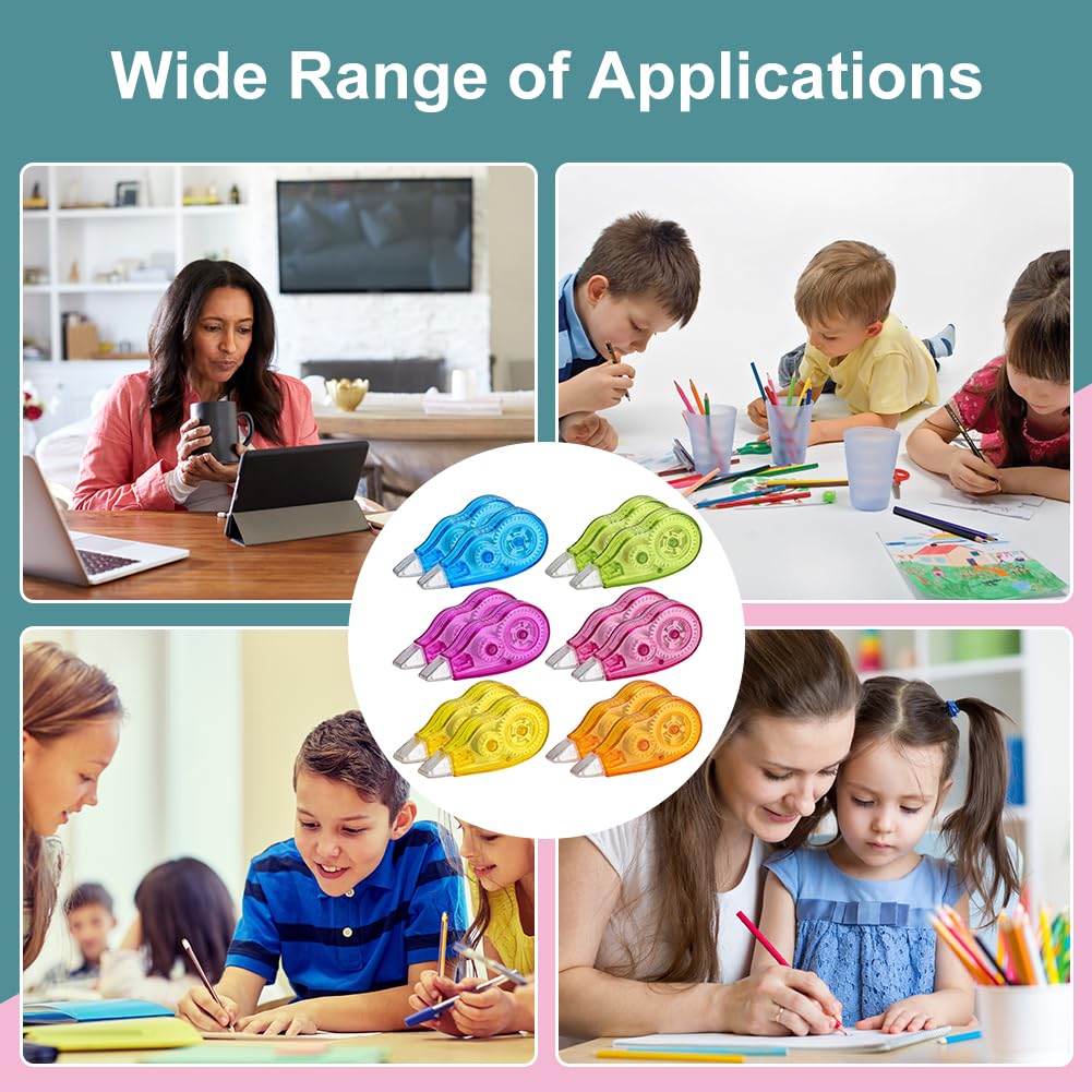 Effaceur Instantané Stylo Rubans Correcteurs - 12pcs Mini Roller De Correction Blanc, Souris Correcteur Pour Fournitures Scolaires École Bureau Meilleur Ruban Correcteur Scolaire 6 souris de correction - Roller correcteur - Ruban blanc - Mini format CONTENU DE LA LIVRAISON ]12 bandes de ruban correcteur sont incluses, chaque morceau de ruban correcteur mesure 4 m x 5 mm, disponible en 6 couleurs, 2... Matériau : plastique + ruban. Largeur du bracelet : 5 mm. Contenu de l'emballage : 6 rouleaux correcteurs. Spécifications: Produit : ruban correcteur Couleur : colorée. 【Instantanéité de la correction des erreurs】Conformité avec les normes de papeterie actuellesAvec ce rouleau correcteur, vous pouvez corriger les erreurs instantanément et avec précision, il suffit de coller le ruban blanc opaque sur l'erreur et de la lisser, pas besoin d'attendre ou de sécher. Tous les détails du produit sont clairement visibles., Grande bobine anti-enroulement., 【Très utilisé】. Il convient parfaitement à une utilisation quotidienne à l'école, au bureau et à la maison. Produit : la recharge officielle de Kores Refill, le rouleau de ruban correcteur sec de haute qualité. Solution idéale pour réduire les déchets, il couvre facilement toutes les encres et deviendra rapidement un indispensable à l'école ou au bureau