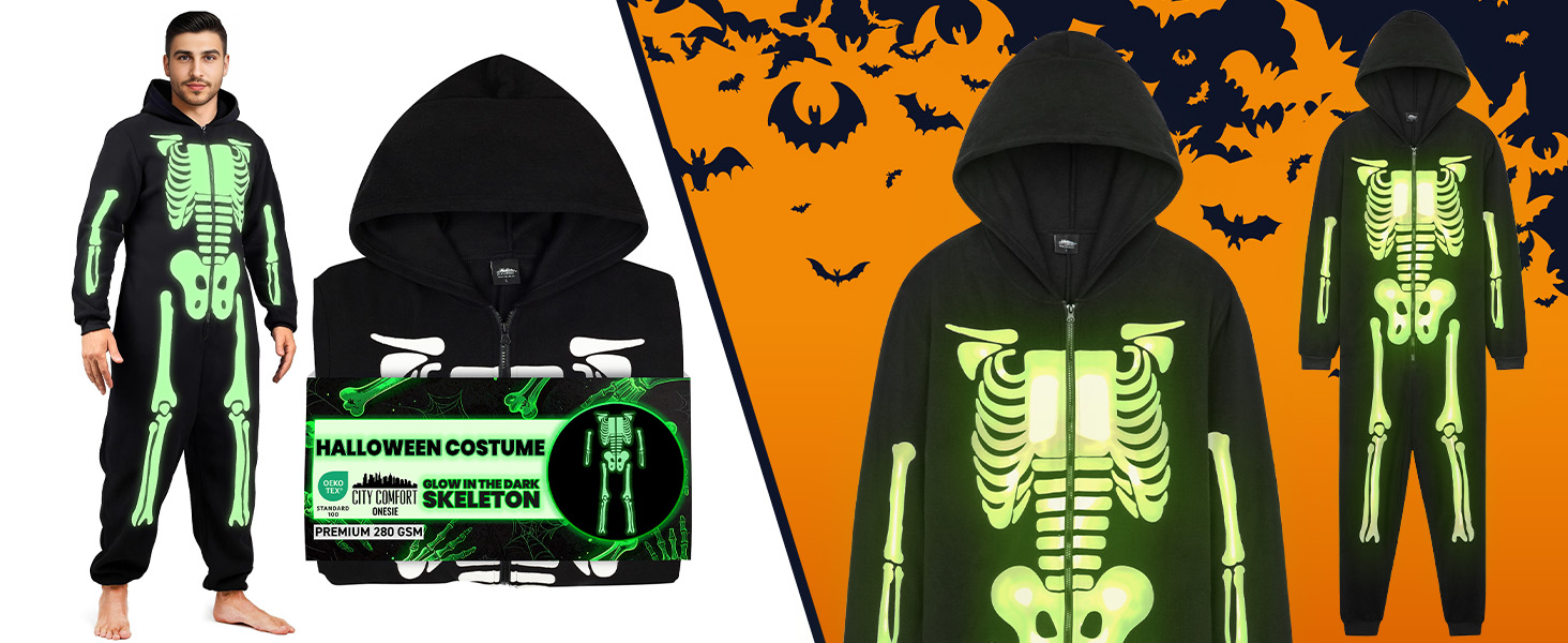 Grenouillère Adulte Halloween Pyjama Cosplay Grenouillère Adultes Femme Homme Blanc Jaune Pyjama Polaire Chaud Homme Femme Funmoon Combinaison animaux pyjama Femme et Homme de Marque Son design squelette phosphorescent brille dans le noir, ajoutant une touche amusante parfaite pour Halloween, les fêtes ou simplement pour se relaxer. Facile à... Facile à enfiler grâce à sa fermeture éclair, elle dispose de poignets et chevilles élastiques pour un ajustement parfait. Une tenue polyvalente qui convient aussi bien comme pyjama douillet que comme deguisement halloween, idéale pour offrir ou se faire plaisir. Design squelette lumineux avec capuche - Avec son impression squelette qui brille dans le noir, cette grenouillere homme apporte une touche fun et originale, parfaite pour Halloween, les soirées déguisées ou simplement pour ajouter un peu de fantaisie au quotidien. Conçue en polaire douce, elle assure confort et chaleur lors des nuits d’hiver ou des moments de détente. Pratique et fonctionnelle - Facile à enfiler grâce à sa fermeture zippée à l’avant, elle est également équipée de poignets et chevilles resserrés pour un meilleur maintien et une coupe confortable adaptée aux adultes et ados. Polyvalente pour toute occasion - Que ce soit pour dormir, se détendre à la maison ou participer à une fête costumée, cette combinaison squelette offre un style unique et un confort absolu en toutes circonstances. Idée cadeau original - Un cadeau amusant et pratique pour un anniversaire, Noël ou une soirée à thème. Ornée d’un motif squelette à l’avant et d’une capuche blanche qui met en valeur les yeux trous, cette grenouillère pyjama ne manquera pas de surprendre vos proches ! Fabriquée en polyester, ce pyjama pour adultes est très respirant et facile à enfiler grâce à ses fermetures zippées et boutonnées