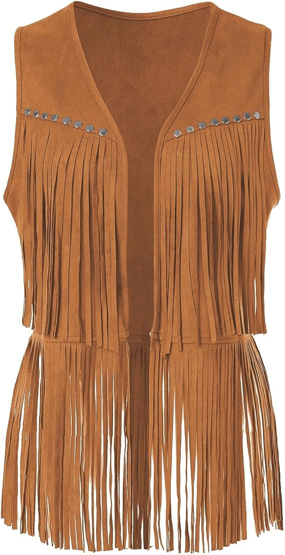 Gilet Hippie Festival Déguisement Costume De Cowgirl Pour Femme - Gilet Sans Manches En Faux Veste à Franges Faux Daim Années 70 Costume de veste sans manches en faux suède hippie, brun, ados, adultes Confectionné en microfibre de qualité supérieure, ce gilet court ofe une douceur inégalée et une durabilité remarquable. Les anges subtiles ajoutent une... Design à pompons : ces gilets adoptent un design de glands, plus élégants et modernes que les vestes traditionnelles. Nos gilets peuvent être combinés avec une chemise blanche ou un pull, une robe, un pantalon cargo ou un jean déchiré. Caractéristiques : gilet à franges pour femme, cowboy, années 70, tenue de cowgirl, festival, gilet cowgirl, costume de pirate, costume de carnaval, mode sans manches, gilet à franges, vêtements hippie, vêtements de fête, marron, tenue disco occidentale, boléro Costume de cowgirl pour femme - Gilet sans manches en faux daim hippie à franges - Veste à franges douce - Courte - Marron - Rétro à franges - Style années 70 - En cuir - Ouvert à l'avant - Riveté - Vêtement d'extérieur - Loisirs Large application : le gilet de bord des années 70 pour femmes est parfait pour divers festivals, cow-boy, fêtes sur la plage, cosplay, fêtes d'Halloween, costumes hippie, festivals de musique, fêtes bohémiennes, fêtes à thème des années 60 ou 70, ou vêtements quotidiens, etc. C'est également un cadeau idéal pour votre famille et vos amis. Veuillez consulter attentivement le guide des tailles avant d'acheter. Gilet sans manches en faux daim pour femme, couleur unie, design ouvert sur le devant vous permet de le porter et de l'enlever facilement. Les pompons fluides se balancent doucement avec les pas et quelques rivets sur la poitrine vous rendent attrayant et cool