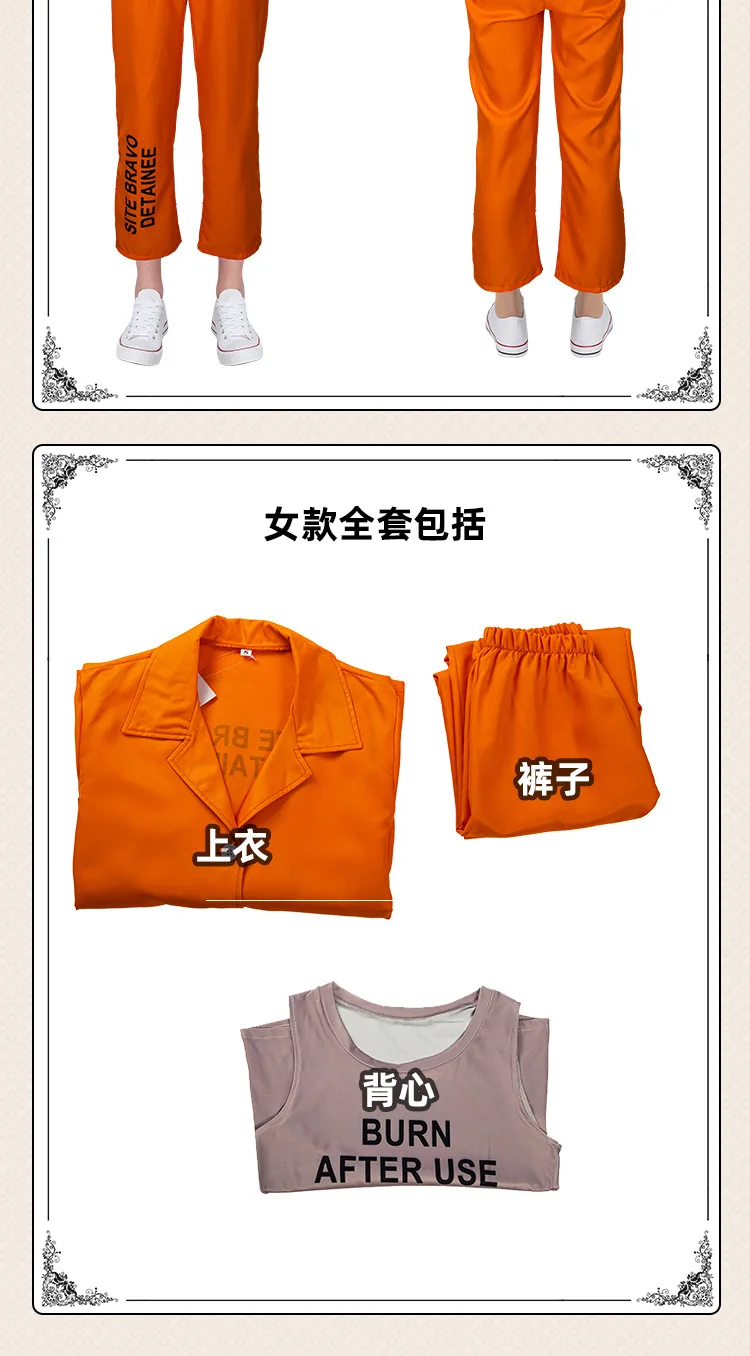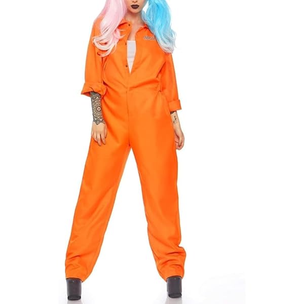Prisoner Jumpsuit Orange Prison Escaped Détenu Jailbird Costume de Prisonnier Adulte, 7Pcs Kit de Jumpsuit Prisoner Orange avec Plaques Numérotées/Plaques Nominatives/Menottes/Chaînes/Autocollants Tête de Mort... Combinaison Orange Rayée Adulte Costume De Prisonnier Adulte, Combinaison Orange De Prison Costume Prisonnier Orange OFFRE SPÉCIALE : Notre costume de prisonnier comprend un chapeau, un haut, un pantalon, un numéro de prisonnier (881688), de grandes menottes (avec clé) et un autocollant tête de mort, recréant parfaitement le style carcéral du prisonnier. DESIGN UNIQUE : La poitrine de ce costume de prisonnier pour homme n'est pas imprimée et est volontairement laissée vierge. COMBINAISON DE PRISON ORANGE : notre ensemble de costumes de prisonnier comprend des accessoires tels qu'un numéro de prisonnier, un collier, des menottes... HAUTE QUALITɠ: Cet uniforme de prisonnier à rayures noires et blanches pour Halloween est fabriqué en tissu 100 % polyester, résistant, confortable, respirant, doux pour la peau et élastique, vous permettant de bouger librement. Vous pouvez utiliser notre autocollant numéro de prisonnier (881688) pour coller sur les vêtements, ou écrire directement le numéro de votre choix dessus avec un stylo. Le numéro de prisonnier (881688) peut être apposé au dos du costume, ce qui correspond parfaitement à l'image du prisonnier en prison. Il est assorti à des menottes (avec clé) et des autocollants tête de mort.