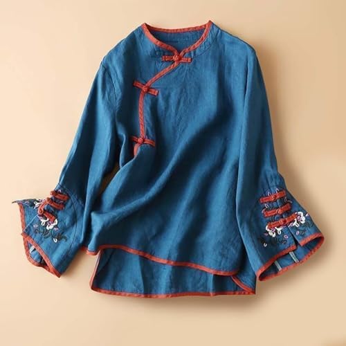 Un cadeau attentionné pour maman ou amis artistiques - Vous cherchez un cadeau unique ? Ce chemisier élégant et confortable est parfait pour la fête des mères, un anniversaire, ou comme cadeau créatif pour les amateurs d'art et ceux qui aiment la mode décontractée et vintage avec une touche orientale. Blouse Vintage Boutons Grenouille Femmes Style Chinois Coton Lin Longue Chemise - Vintage Brodé Vêtement été Bohème Zen 🌸 Coton et lin respirant : léger, doux et doux pour la peau – Idéal pour les journées chaudes et pour se détendre détendu. Chemise pour femmes, tendance nationale, top basiq... – Grandado Chemisier élégant de style chinois pour un confort estival : fabriquée à partir de lin de coton respirant, cette tunique à manches 3/4 est votre chemise longue en coton et lin de style chinois pour femme. Coupe décontractée pour un confort zen tout au long de la journée : conçue dans une coupe ample de M à 3XL, cette tunique brodée Hanfu offre un confort décontracté idéal pour la méditation, la cérémonie du thé ou la détente. Robe maxi chemise ample en lin à boutons de couleur unie pour femmes M... Coupe ample, confortable et inclusive : disponible en M-3XL pour une coupe flatteuse sur une large gamme de types de corps. Bouton grenouille classique : les détails traditionnels d'inspiration chinoise ajoutent un charme rétro unique. Le tissu fluide vous garde au frais en été et vous permet de vous sentir à l'aise tout au long de la journée. Calvaya Robe chemise longue avec boutons et imprimé aléatoire, grande Broderie élégante : les motifs floraux complexes offrent une touche d'expression artistique. Sa broderie ethnique et son charme cottagecore en font une pièce remarquable dans votre garde-robe d'été.