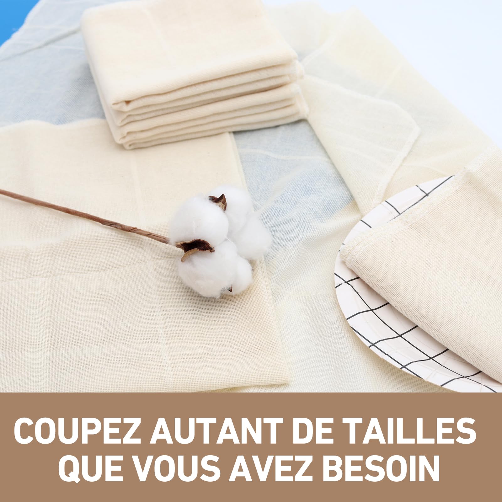 La gaze alimentaire possède d'excellentes propriétés de filtration et de respirabilité. Nombreuses Utilisations Cette gaze alimentaire convient à de nombreuses applications dans la cuisine et ailleurs, notamment pour filtrer les jus de fruits ou le vin. Gaze Alimentaire de Haute Qualité Fabriquée à partir de matériaux de haute qualité, la surface est lisse, agréable au toucher et lavable pour une utilisation à long terme. C'est un outil de filtration idéal pour la cuisine. 【100 % coton naturel】 Cheese cloth. En outre, elle peut être utilisée comme décoration artisanale pour diverses fêtes. Tissu Filtration Alimentaire 4 PCS Etamine Alimentaire,100% Coton Non Blanchi,50 X 50 Cm Tissu Fromage Yaourt Laits Végétaux Bomtop 6 Pièces Etamine Alimentaire pour Cuisiner, Non Blanchi, Lavable Multiusa La taille du produit est de 50 x 50 cm, ce qui peut répondre à vos besoins quotidiens en matière de cuisine, est très pratique à utiliser et peut être coupé pour répondre à vos besoins. Elle peut non seulement filtrer divers liquides, mais aussi être utilisée comme tissu respirant pour la fermentation. Résistant à la déchirure et à l'usure. Urgo Carrés De Coton Non Blanchi Ultra-Doux 10X8cm Pièces 180 | Newpharma Contenu de L'emballage Nous proposons des packs de 4 pièces et des packs de 8 pièces, en quantité suffisante pour répondre à vos besoins quotidiens. 【Facile d'entretien et hygiénique】 Avant la première utilisation, rincer l'étamine alimentaire à l'eau froide. Fabriqué en coton non blanchi de haute qualité, sans danger pour le contact alimentaire. Découvrez notre ensemble de 4 étamines alimentaires, idéales pour tous vos besoins en cuisine et en préparation des aliments. Fabriquées en mousseline de coton non blanchi, ces étamines ultra fines sont parfaites pour filtrer avec précision vos jus, fromages, thés et épices, tout en étant respectueuses de l’environnement 【Conception unique】Cette étamine alimentaire présente un design de couture unique. Peut également être stérilisé à l'eau chaude. Les bords fins garantissent que la gaze alimentaire pour le filtrage ne s'effiloche pas pendant l'utilisation et les coutures sont fines, bien proportionnées, robustes et non pelucheuses.