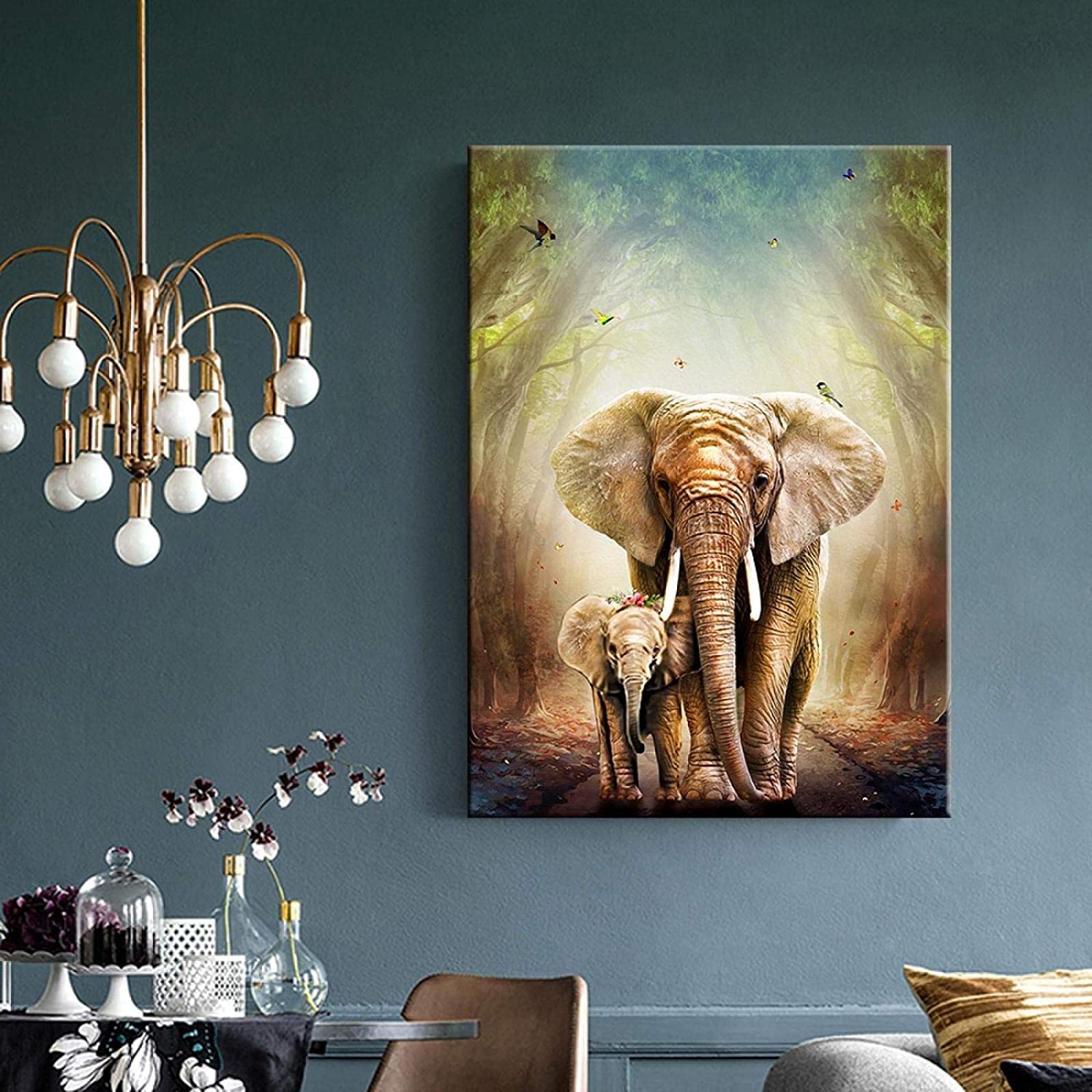 Tableau africain éléphant art mural encadré Impression Jet D'encre Sans Cadre Toile - Éléphant - Coucher De Soleil - Water - Décoration Murale - 90x90 Cm Décor Africain Salon Tableau - V - Toile de peinture murale - Animaux en fleurs - Lion... Peinture à l'huile faite à la main sur toile, décoration murale, style...