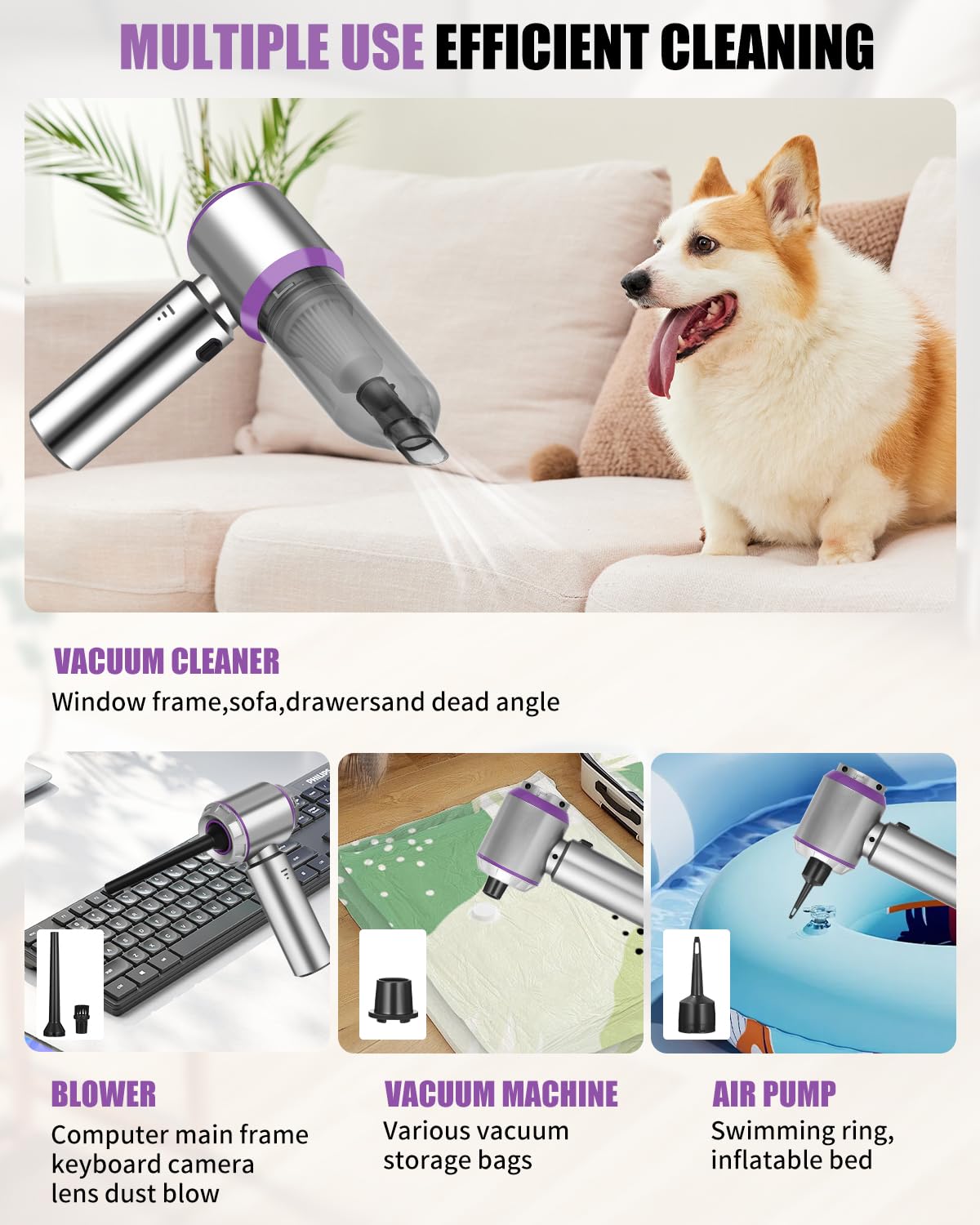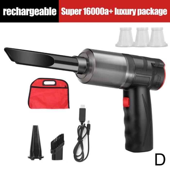 Aspirateur à Main de Voiture Sans Fil - QINGQUE - 16000PA... Rend votre voiture/maison propre et ordonnée et est un bon assistant pour le nettoyage. Vitesse basse 6KPA, pour les travaux de nettoyage quotidiens. Aspirateur de voiture polyvalent:Le mini-aspirateur à main sans fil dispose de différents accessoires pour différents usages. Vitesse élevée 15KPA, pour un nettoyage en profondeur complet. Description du produit Vous êtes agacé par le désordre causé par les papiers, les miettes de snack, la poussière et les cheveux dans votre voiture ? L'aspirateur à main sans fil YOUNICE peut résoudre vos soucis ! Il peut être un aspirateur à main pour le nettoyage quotidien des maisons, des véhicules et des bureaux, un souffleur de poussière pour le nettoyage des lentilles d'appareil photo ; il peut également être une pompe gonflable pour gonfler les matelas pneumatiques et les bouées ou une pompe pour gonfler les sacs d'aspirateur. Aspirateur Voiture Puissant,16000Pa Aspirateur À Main Avec Moteur Qu'il s'agisse de miettes de snack, de poussière, d'autres particules ou de poils d'animaux, l'aspirateur sans fil les élimine sans effort et garde votre maison et votre voiture propres. Grande batterie 6000mAh : le vide de 6000mAh vous permet de nettoyer tous les endroits sans être limité par la longueur du câble. Aspirateur Main Sans Fil Couleur D Aspirateur à Main Sans Fil 2 En 1, 16000PA, Aspiration Aspirateur Main Portable 16000pa Aspirateur à main sans fil pour voiture Poignée ergonomique : la poignée ergonomique de l'aspirateur léger facilite l'utilisation à une main avec moins de fatigue des mains., Moteur à aimant permanent : 80., 000RMP haute vitesse, fonctionnement stable, forte aspiration, grande efficacité de travail. 100W Aspirateur de voiture puissant 16000PA Puissance d'aspiration super puissante, deux fois plus puissante que les aspirateurs à main ordinaires, efficacité de nettoyage supérieure. Notre aspirateur portable est équipé d'un moteur à aimant permanent de 100 W, 80., 000 RMP, avec une puissance d'aspiration allant jusqu'à 16000 PA, ce qui facilite l'élimination des particules de poussière et des saletés sur les sols ou les voitures. LanBlu teur Voiture Sans Fil: Un Appareil Multifonctionnel Pour... Chargement de type C & batterie de 6000mAh : l'aspirateur à main sans fil est équipé d'une batterie de 6000mAh, avec le port de chargement de type C, vous pouvez le recharger à tout moment dans votre voiture/maison. Aspirateur portable avec réglage de 3 vitesses Vous pouvez régler les vitesses de l'aspirateur de voiture en fonction de vos besoins de nettoyage. Le filtre HEPA tient la poussière et la saleté à l'écart et évite les obstructions. La poignée ergonomique de notre aspirateur à main auto permet une prise en main confortable pendant une période prolongée. Cet aspirateur vous permet d'éliminer sans effort la poussière tenace, les restes de nourriture, les poils d'animaux et les particules, afin de garder votre maison et votre voiture propres et bien rangées. Filtre HEPA lavable & compact:Notre aspirateur de voiture fait du nettoyage un jeu d'enfant grâce à son design compact et maniable et à sa construction légère qui permet de le déplacer facilement dans la maison et dans la voiture.