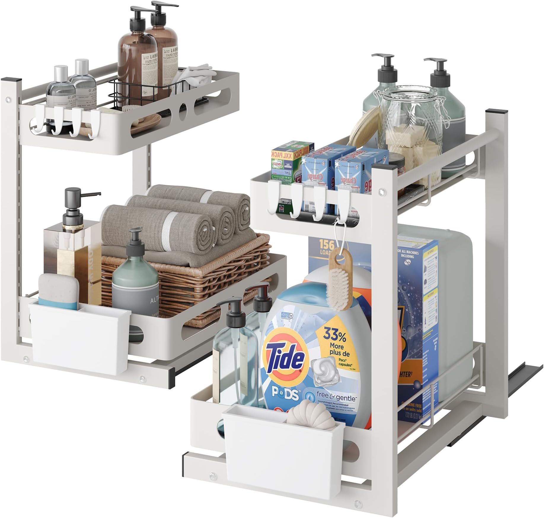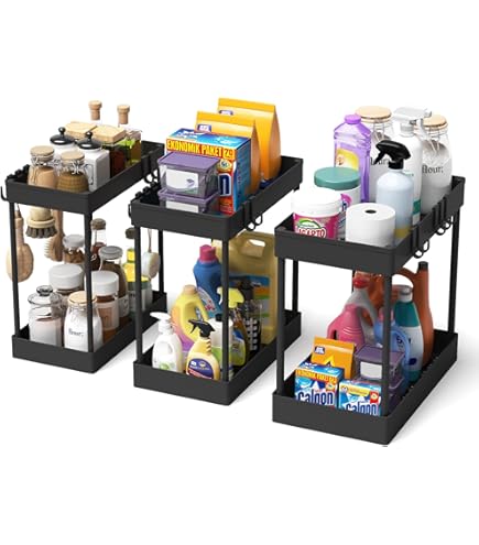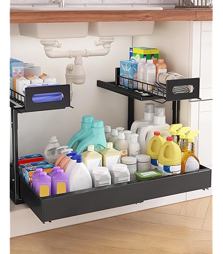 Organisateur Sous Evier Cuisine Rangement Sous évier Panier Coulissant à 2 Niveaux Pour Armoire De Rangement Evier Cuisine homicozy Organisateur Evier Cuisine, 2 Niveaux Métal Housolution Rangeent sous Évier en étal, 2 Niveaux Étagère sous Évier Coulissant de Cuisine... Des glissières de positionnement à la base empêchent le tiroir d'être complètement retiré Hauteur réglable entre 41 cm et 49 cm pour s'adapter à la hauteur de votre armoire Patins en caoutchouc antidérapants Glissières de positionnement à la base Empêchent les rayures sur les plans de travail CONCEPTION ROBUSTE: Cadre en métal durable avec rails coulissants fluides et barreaux de protection pour une stabilité optimale DIMENSIONS PRATIQUES: Étagère extensible et modulable pour s'adapter aux différentes configurations d'espace sous évier Fabriquée en métal robuste, notre étagère de rangement sous l'évier est conçue pour résister à des charges lourdes et à une utilisation quotidienne, garantissant ainsi une durabilité et une stabilité à long terme