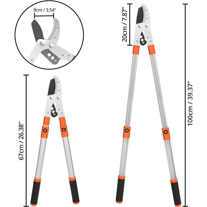 【CONCEPTION À LEVIER À QUATRE POINTS】Ce sécateur manuel est doté d'un levier à quatre points. - Le levier multiplie par 2 à 3 la force de coupe, pour une efficacité accrue et un gain de temps considérable. - Les lames hautement résistantes à la rouille, avec leur forme en bec de requin, assurent une prise ferme pendant la taille et empêchent tout glissement. Les lames sont traitées avec un revêtement spécial en Téflon qui réduit les frottements, permet une coupe rapide, prévient la rouille et est facile à nettoyer pour une durée de vie prolongée. - Sécateur universel, idéal pour les gauchers comme pour les droitiers, pour des travaux de jardinage exigeants. Fabriqués avec des lames en acier, ces sécateurs offrent une coupe de précision pour les branches jusqu'à un certain diamètre, ce qui les rend parfaits pour élaguer les arbres, les haies, les arbustes, et plus encore. Le coussin absorbant les chocs amortit l'impact, réduisant les vibrations et améliorant encore le confort Il est parfait pour les professionnels, les jardiniers débutants et les pépiniéristes. 【LAME EN ACIER À HAUTE TENEUR EN CARBONE SK5】Ce sécateur est doté d'un tranchant incurvé de 105 mm et est fabriqué à partir de lames en acier au carbone SK-5 de qualité supérieure pour un tranchant exceptionnel. NUTKIT Sécateur et sécateur - Sécateur extensible pour le jardinage - Robuste ! Lame Acier Carbone Sécateur Professionnel Sécateur Télescopique à Long Manche – Coupe-Branches Et Ciseaux Jardinage Arbre – Outil Jardin Polyvalent | Leroy Merlin Sécateur Télescopique Jardin GARDENWORK Coupe-branches extensible avec action composée, 43,2 à 58,4 cm, lame tranchante SK5 pour couper des arbustes et des branches de 5,1 cm ; Livraison... 【POLYVALENT】Ce sécateur garantit des performances optimales sur des branches jusqu'à 65 mm d'épaisseur. 【POIGNÉE ANTIDÉRAPANTE】Les poignées de ce sécateur sont recouvertes d'un caoutchouc souple antidérapant haute performance pour une prise en main confortable et résistante à l'usure. Cette utilisation astucieuse de l'effet de levier augmente la force appliquée aux lames, améliorant ainsi considérablement les performances de coupe. Coupez facilement les nouvelles pousses, les arbustes et les haies de votre jardin, pépinière ou verger. COUPE BRANCHE TELESCOPIQUE 98cm EN ALUMINIUM Le manche en alliage d'aluminium haute résistance et résistant à la corrosion améliore considérablement l'efficacité et la sécurité de la taille. 【RÉTRACTABLE DE 69 À 107 CM】Le sécateur NUTKIT est doté d'une conception télescopique avec cinq niveaux de réglage. Relâchez simplement le bouton lorsque vous avez atteint la taille souhaitée. Nous vous répondrons dans les plus brefs délais.