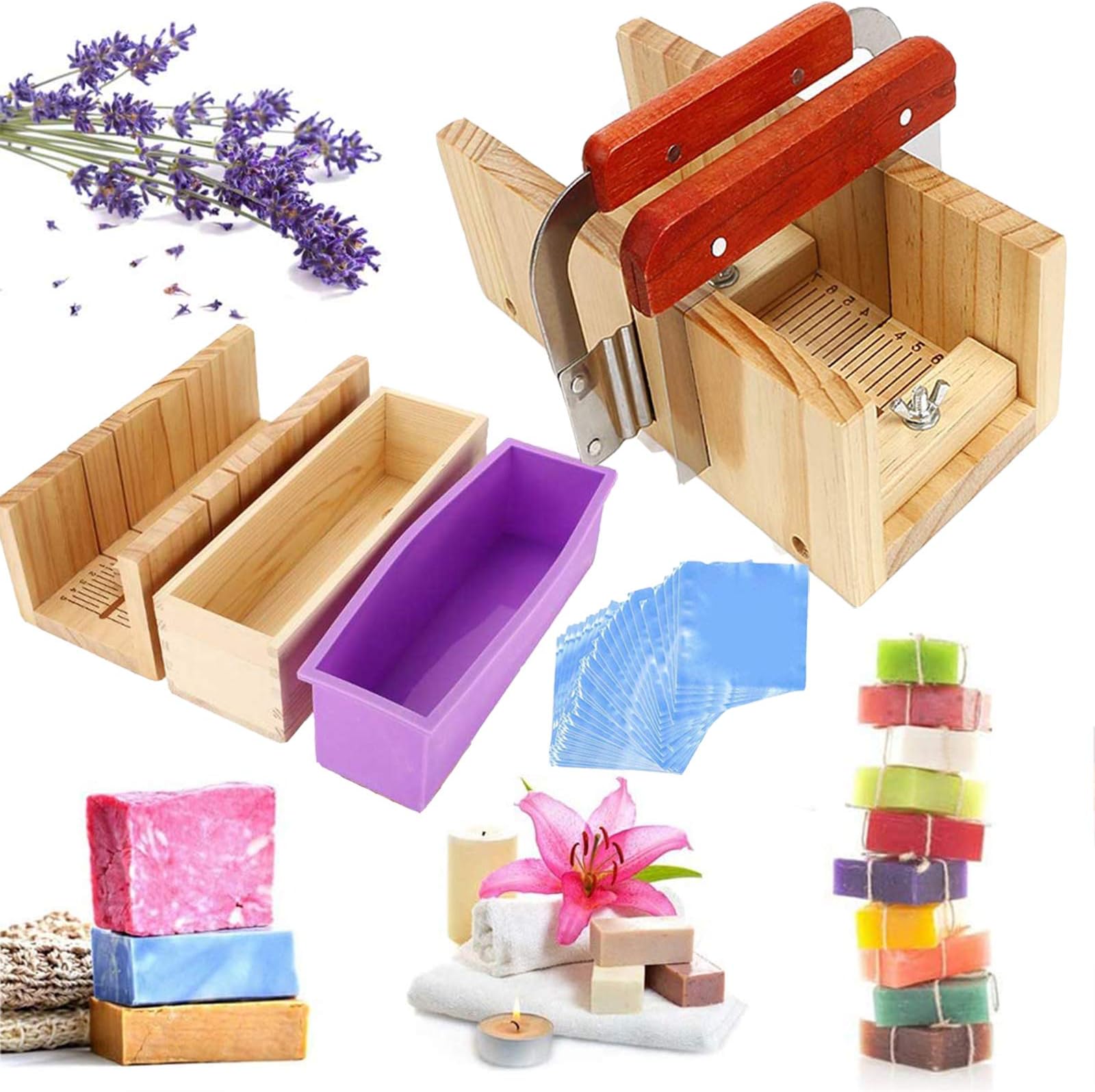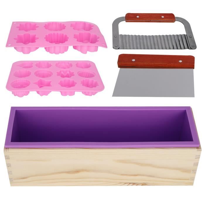 Il est adapté pour les anniversaires, Noël et autres fêtes. Moule DIY Savon Bougie Ensemble De Moules à Savon, Coupe-boîte Rectangulaire En Bois Ensemble Découpe Savon Lames Inox Caractéristiques : Nom : ensemble de coupe-savon., Matériau : pin. Sonew Ensemble de coupe‑savon Kit d'Outils de Coupe de Savon Moule... ✧ [Facile à utiliser] Droits et ondulés, assez incisives pour couper le savon rapidement et proprement. Les moules à pain en bois sont conçus pour couper du savon pré-durci, pas entièrement durci, ont des surfaces lisses, donc faciles à libérer et sont pratiques à nettoyer. Description du produit État : 100 % neuf. Type d'article : moule à savon. Matériaux : bois et silicone. Couleur du moule en silicone : violet rose bleu ciel. Capacité : 1200 ml. Taille du coupe-savon : env. 26 x 22 x 3 cm. Dimensions de la boîte en bois : environ 280 x 90 x 80 mm. Taille du moule en silicone : env. 275 x 85 x 80 mm. Poids approximatif : 1995 g. Contenu ✧ [Excellent artisanat] Sûr à utiliser, fiable, pas facile à casser ou à déformer, et réutilisable, le moule à savon en bois est traité avec une finition exquise pour une longue durée de vie, fabriqué en bois de pin sélectionné avec des emporte-pièces en acier inoxydable. Dimensions : environ 25 x 11,7 x 8,5 cm. ✧ [Choix idéal] Le coupe-savon réglable est un cadeau parfait et attentionné pour votre famille et vos amis qui aiment les travaux manuels. Moule à savon en silicone avec boîte en bois et couvercle Savon carré Dimensions intérieures de la table à savon : environ 25 cm x 8,5 cm x 7 cm. Il peut être utilisé pour faire des savons faits à la main, des gâteaux, du pain, du chocolat, de la gelée, des muffins, etc.