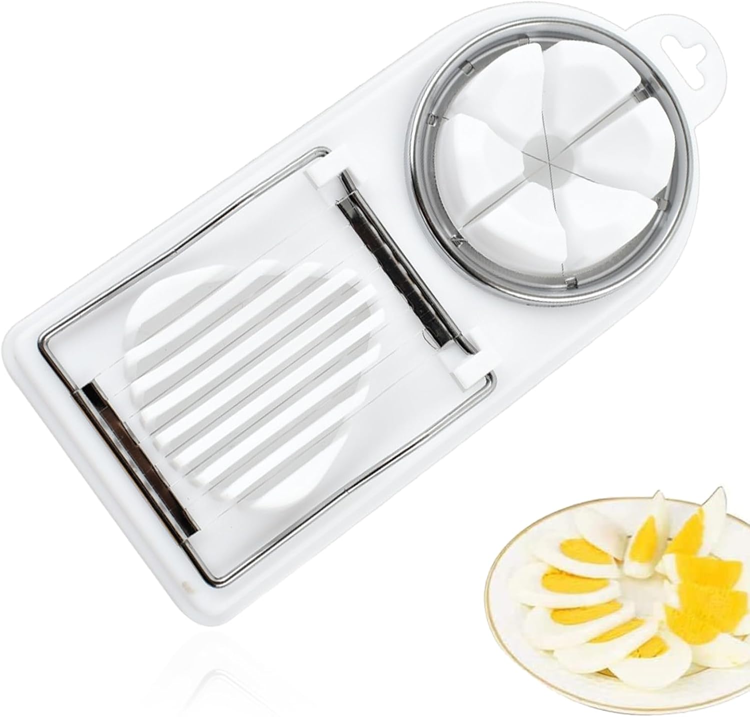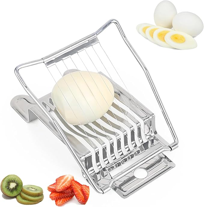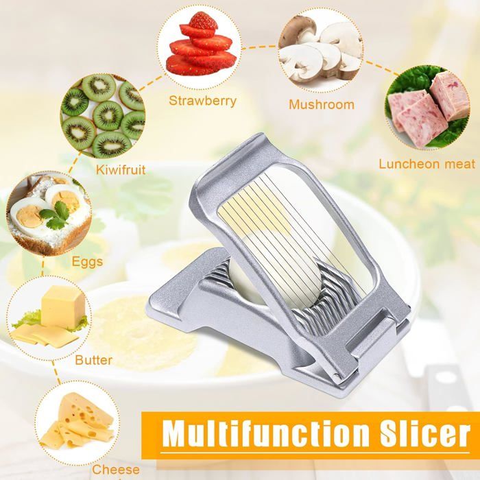 Coupe-œufs en acier inoxydable,Coupe oeuf à la coque,Toqueur à oeuf... FACILE À UTILISER : Il suffit de placer l'œuf à la coque dans la position correspondante sur coupe oeuf et d'appuyer doucement sur la poignée pour obtenir rapidement des tranches ou des dés réguliers, sans avoir besoin de compétences compliquées, même les novices en cuisine peuvent facilement commencer, ce qui permet d'économiser du temps de cuisson. Rangement pratique : Le design compact du produit avec ses trous de suspension permet de le suspendre et de le ranger facilement sans prendre trop de place dans la cuisine, et sa taille légère le rend également facile à transporter, ce qui convient aux pique-niques, au camping et à d'autres activités de plein air. Trancheuse Oeuf à La Coque Coupe-toates En Acier Inoxydable, Coupe Toate, Trancheur à Toates Coupe Oeufs Durs Matériaux de haute qualité : coupe oeuf à la coque est fabriqué en plastique durable, sûr, non toxique et durable, tandis que la ligne de coupe est en acier inoxydable, tranchant et résistant à la rouille, et peut maintenir un bon effet de coupe pendant une longue période, garantissant une utilisation en douceur et sans problème à chaque fois que vous l'utilisez. TOQUEUR A OEUF,Silver-S--Ciseaux à œufs en acier inoxydable, coupe œufs... DESIGN MULTIFONCTIONNEL : Ce coupe oeuf peut non seulement couper les oeufs en tranches fines, mais aussi les couper en lamelles à l'aide du moule spécial situé en dessous, ce qui répond aux différents besoins de cuisson et de présentation, que ce soit pour préparer des salades, des sandwichs ou des charcuteries délicates, il est facile à utiliser. Coupe-œufs en acier inoxydable 2 en 1, pour sépara... - Grandado