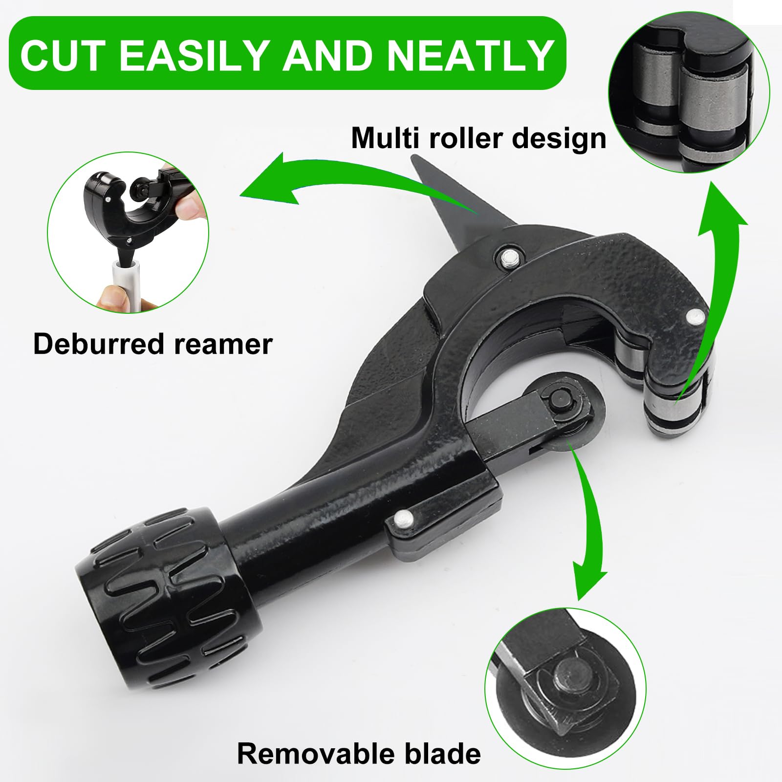 Outil Coupe Tuyaux Cuivre Pvc Coupe-tubes Robuste, Diamètres De Coupe De 3 à 35 Mm, Idéal Tube Aluminium la pauvreté État ferraille couper pvc stress Impliqué échapper COUPE-TUBE DURABLE POUR cuivre acier inoxydable avec lames en acier... Le coupe-tube a une capacité de coupe utile de 3 à 35 mm. Le coupe-tube comprend 1 lame de rechange dans la poignée et un alésoir d'ébavurage à l'arrière. Pour une connexion lisse, le tuyau doit être ébavuré avec un outil d'ébavurage spécial ou une lime. Caractéristiques : Le coupe-tube en cuivre est conçu pour une coupe rapide, sûre, propre, lisse et précise des tubes, tuyaux, tuyaux en PE, PVC, caoutchouc, laiton, cuivre ou acier inoxydable. En alliage d'aluminium à haute résistance avec une roue de rechange pratique pour une utilisation maximale., Caractéristiques : 1., Produit de qualité supérieure., 2., Type : coupe-tube., 3., Matériau : acier inoxydable., 4., Taille : 3-35 mm., Couleur : noir., Contenu : 1 coupe-tube. ★ Le coupe-tube comprend 1 lame de rechange dans la poignée et un alésoir d'ébavurage à l'arrière ★ Assemblage à glissières pour un fonctionnement fluide Coupe-tube avec système télescopique de 3 à 35 mm ALYCO. Coupe-tube avec ... Coupe-tube en acier forgé 12-50 mm ALYCO. Coupe-tube pour tuyaux en acier...