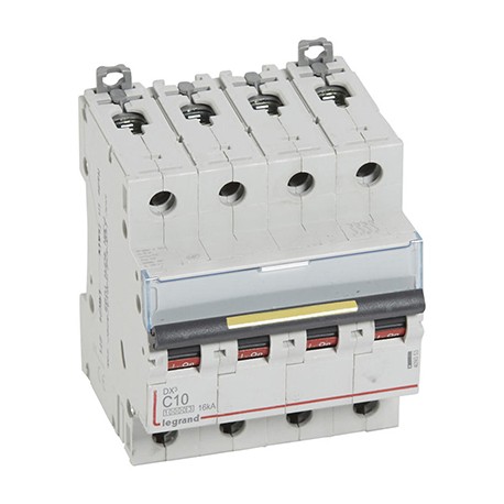 LEGRAND Disjoncteur différentiel monobloc DX³6000 10kA arrivée haute et départ bas à vis 4P 400V - 25A Disjoncteur DNX3 10A courbe C 400V 4500-6kA arrivée et sortie à vis... Disjoncteur 4P 400V 10kA à Vis Disjoncteur 10A 4P Courbe C 10kA 400V LEGRAND 006998 Disjoncteur 4P 400V Legrand Compatible avec le peigne HX³ traditionnel tétrapolaire ou câblage classique Accepte les auxiliaires et accessoires DX³ ainsi que les blocs différentiels adaptables Nombre de pôle(s): 4 pôles , Connexion: Vis/vis , Peignes: HX³ tradi., ou câblage tradi. Legrand Disjoncteur DX³6000 10kA arrivée haute et départ bas à vis, 4P, 400V~, 10A, courbe C, pour peigne HX³ traditionnel., Réf.