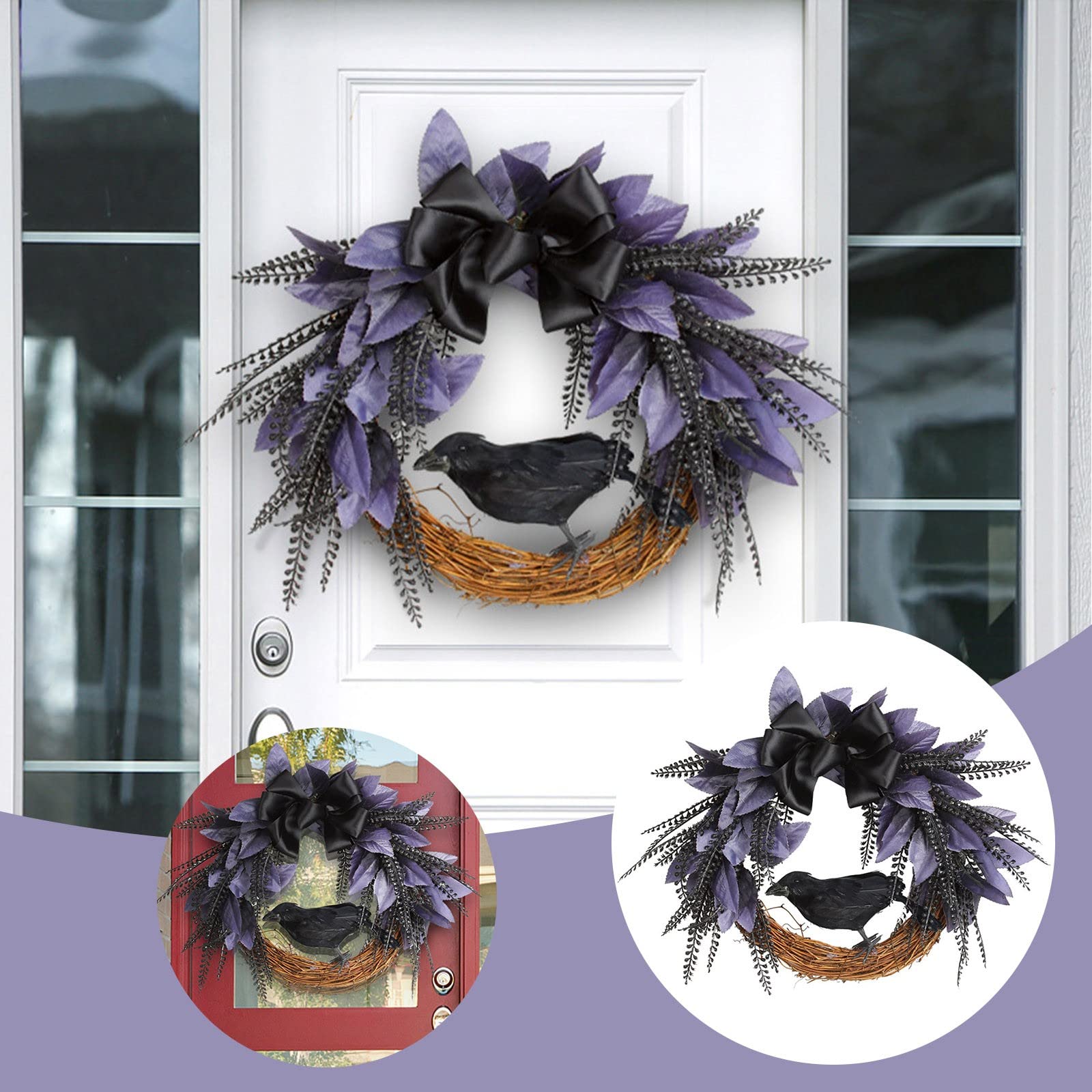 Couronne de corbeau artificielle pour porte d'entrée, décoration d Décoration Fait Main Halloween Couronne D'Halloween Pour Porte D'entrée, Couronne De Corbeau D'Halloween De 17,7 Pouces, Couronnes De Porte D'Halloween Noires Avec Corbeau De Roses, Couronne Artificielle Pour Décorations De Fête De Couronne D'automne Cette couronne de porte d'entrée d'automne est adaptée pour la porte d'entrée, le salon, la cheminée, les armoires, les murs, les fenêtres, les étagères, créant un bel environnement et une atmosphère agréable à la maison Forme ovale unique, entièrement faite à la main Couronne ovale d'Halloween de 45,7 cm avec corbeau artificiel, rose, hortensia, dahlia, plumes de corbeau – Décoration d'intérieur pour porte d'entrée... Accessoires artificiels de haute qualité : hortensia, dahlia, rose, plumes de blé Corbeau insolite réaliste