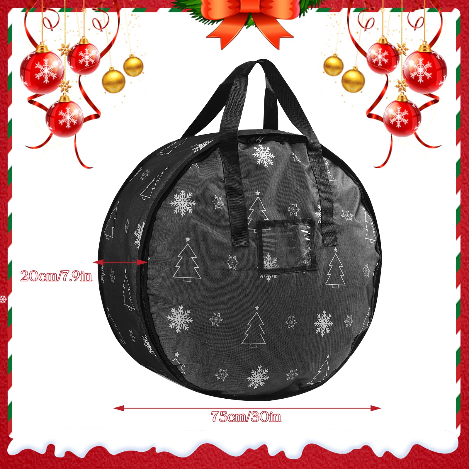 Un sac polyvalent qui optimise efficacement votre espace de rangement. Sac Rangement Guirlande Noël Teksome Sac De Rangement Pour Couronne De Noël – Boîte Transparente à Fermeture éclair, Couronne Ronde Avec Fermeture éclair Pour Décorations D'Halloween Couronne De Noel 🎄Caractéristiques: -1., Ce boîte de rangement pour guirlandes de noël de 76 cm de diamètre et 20 cm de largeur offre une grande capacité, idéale pour ranger en toute sécurité des couronnes, guirlandes et décorations de Noël., -2., Le sac pour couronne est fabriqué en matériau imperméable et résistant à l’usure, avec une fermeture éclair et un design scellé assurant une excellente protection contre la poussière et l’humidité., -3., Le sac de rangement décoration avec double fermeture est équipé d’une poignée renforcée pour un transport facile, parfait pour le rangement domestique et l’organisation des décorations de fête., -4., Plusieurs sacs de rangement peuvent être empilés de manière ordonnée afin d’économiser de l’espace., 📝Mode d’emploi: -1., Ouvrez la fermeture du boîte de rangement pour guirlandes de fête et placez délicatement la couronne ou les décorations à l’intérieur, sans les comprimer excessivement., -2., Une fois rangé, refermez la fermeture éclair et utilisez la poignée renforcée pour transporter facilement le sac dans une armoire, un grenier ou un espace de stockage. Double fermeture éclair et poignées chaque sac de couronne de Noël est équipé de 2 fermetures éclair robustes et d'un ensemble de sangles à boucle. Il est facile à plier lorsqu'il n'est pas utilisé et ne prend pas de place La fermeture à glissière étanche et anti-poussière permet un rangement propre et ordonné, prolongeant la durée de vie de vos décorations de Noël. Il allie parfaitement esthétique et fonctionnalité. Sac de rangement transparent pour couronne Sac de rangement de guirlande 60x20 cm d'éGOOsseur... Les poignées renforcées assurent une bonne résistance au poids, facilitant le transport. 🎄【Taille Appropriée】Avec un diamètre de 75 cm et une largeur de 20 cm, ce sac de rangement pour couronne de noël offre une capacité spacieuse, idéale pour ranger facilement les couronnes, guirlandes et accessoires de fête, tout en facilitant leur accès et utilisation. 🎁【Cadeau Idéal】Le sac de guirlande de noël est un excellent choix, que ce soit pour un usage personnel ou comme cadeau pour vos amis et votre famille. RESOYE Sac de rangement pour couronne de Noël, 75 cm, noir ✅【Haute Qualité de Fabrication】Le boîte contenant pour décorations de noël est fabriqué à partir d’un tissu épais et résistant à l’usure, avec des coutures soignées pour une durabilité accrue. Il aide à organiser facilement les décorations de Noël tout en ajoutant une atmosphère chaleureuse et festive.