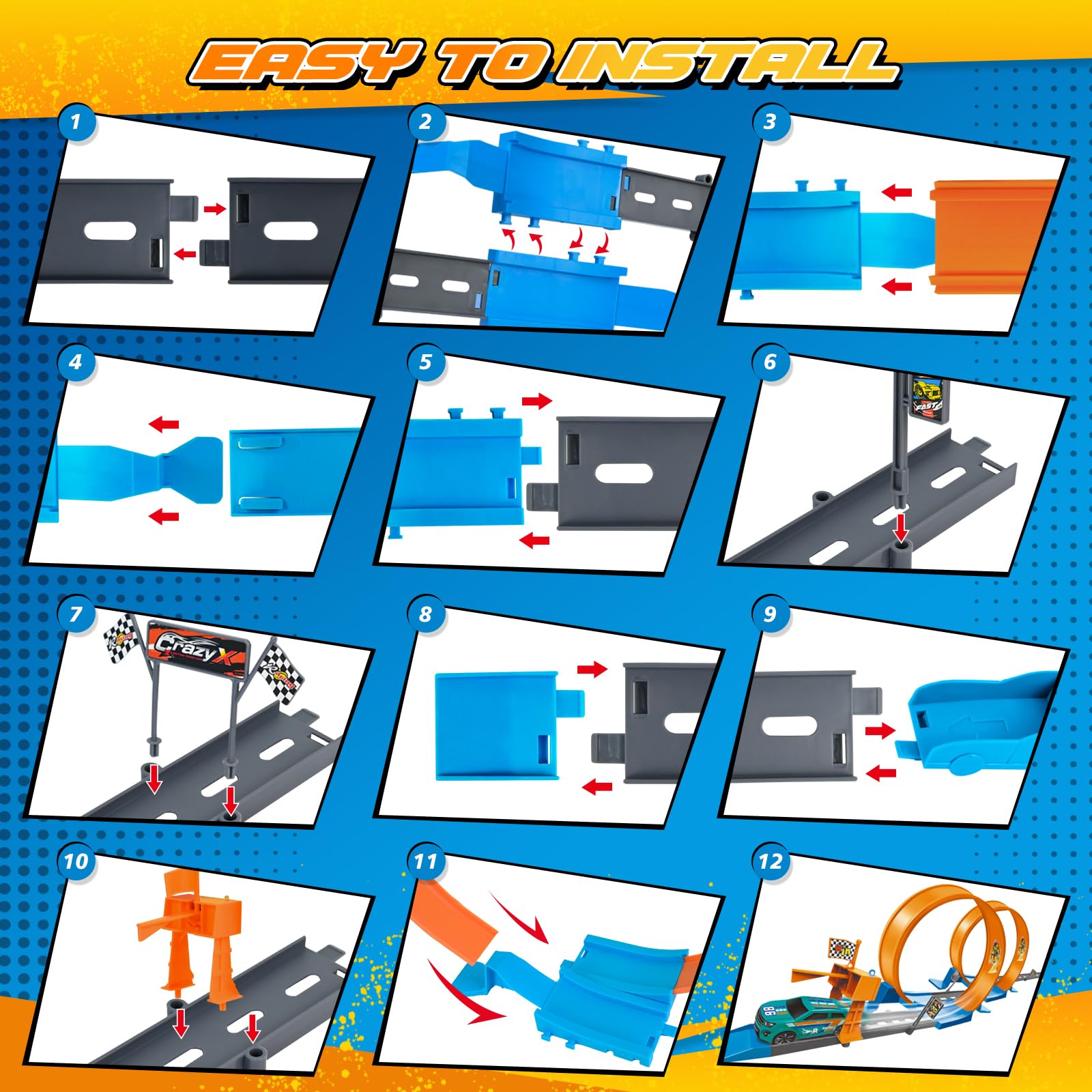 🚗🚗【Contenu】Vous recevrez : 6*voitures à remontoir, 4*pistes souples, 10*pistes inclinées, 16*pistes droites courtes, 2*lanceurs motorisés, 2*portes d'arrivée lumineuses, 2*drapeaux d'arrivée, 2*petites pistes bleues courtes, 2*petites pistes bleues courbes, 12*barrières, 4*portes à double drapeau, 8*drapeaux simples, 4*autocollants courts, 2*autocollants longs et 1*boîte colorée. Circuit Avec 3 Loopings - Nxs Racers - La Grande Récré 🎀🎀【Le Cadeau Idéal】Ce circuit pour enfants est présenté dans un emballage raffiné au design original, ce qui en fait le cadeau parfait pour les enfants à l'occasion d'un anniversaire, de Pâques, d'Halloween, de Noël ou d'autres fêtes. Jouet Voiture à Remontoir 76 Pièces Domybest Circuit Voiture Enfant Piste Aventure De Voiture Jouet Pour Enfants Piste De Course Voiture Piste De Course Montessori Piste De Voiture Jeux D'Educatifs Montessori Cadeau Pour Garçon Fille Cadeau Garçon Fille 3 Ans Jeu Construction Avertissement De Sûreté Ne convient pas aux enfants de moins de 3 ans. Le jouet est également équipé de lumières, de musique et d'une rampe colorée, qui ajoutent au plaisir et au défi. Circuit De Voitures Loopings 360° & Son Bolide De Course tout Jeux De... Votre enfant adorera certainement ce jouet. Les parents et les amis peuvent se joindre à la fête en choisissant leurs voitures préférées pour vivre le frisson de la course. HAOPYOU Circuit Voiture Enfant Dinausaures Piste de Voiture Jouets de... Les enfants peuvent combiner des sections droites et des pistes en U dans différentes configurations, ce qui les aide à améliorer leur coordination œil-main. 🎶🎶【Système de Piste Multi-Configuration】Ce système de piste polyvalent permet un assemblage libre dans plusieurs configurations : quatre circuits en U, des duels de course, des pistes de saut et plus encore. Ce circuit modulaire est fabriqué à partir de plastique de première qualité, garantissant qu'il est non toxique, robuste et durable. Description du produit Vous recevrez : 6*voitures à remontoir, 4*pistes souples, 10*pistes inclinées, 16*pistes droites courtes, 2*lanceurs motorisés, 2*portes d'arrivée lumineuses, 2*drapeaux d'arrivée, 2*petites pistes bleues courtes, 2*petites pistes bleues courbes, 12*barrières, 4*portes à double drapeau, 8*drapeaux simples, 4*autocollants courts, 2*autocollants longs et 1*boîte colorée. Conçu pour développer la dextérité manuelle et l'imagination des enfants, il les aide à construire leur propre monde sur les rails.