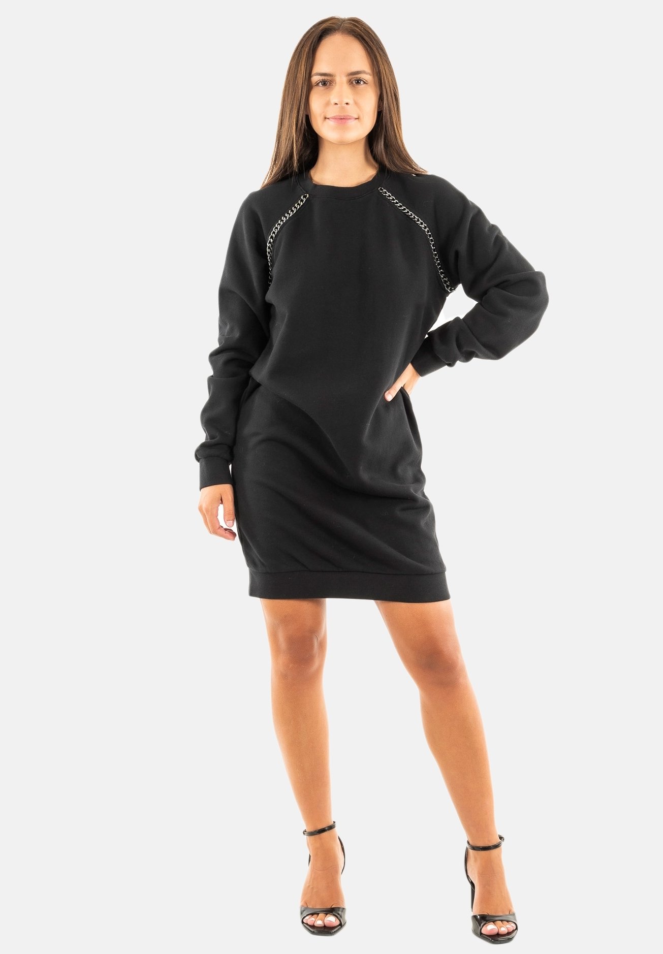 Robes Freeman T.porter pour femme | Réductions en ligne jusqu'à 35 Petits strass noirs au niveau du col Col cache-coeur à pression Fermée par un zip au dos Coupe droite Manches 3/4 boutonnées Détail en dentelle sur le bas Robe élégante Soirée Freeman T. Porter - Robe Courte Noire Unie Zippée Au Dos à Col Cache Robe Noire Courte Zip Dos New Denim pour Femme | Freeman T. Porter Robe courte noire unie ajustée, col v et à manches longues en voile...