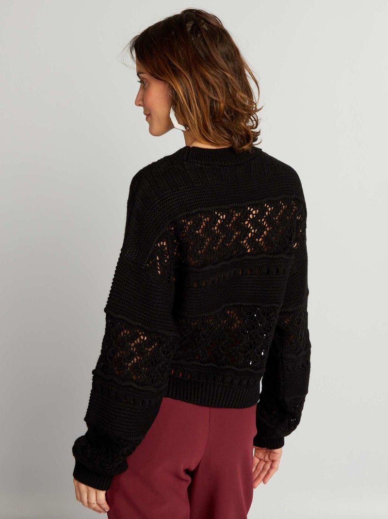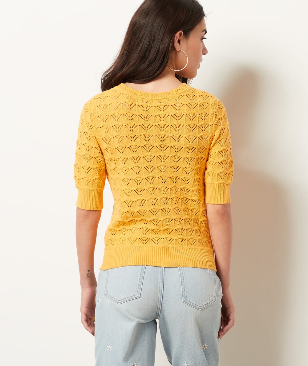 Maille Ajourée Effet Usé - Manches Longues Col Rond Tissu Ajouré Pull Torsadé Déchiré Col Rond, Manches longues Vêtement Femme Tendance Pull Manches Courtes Maille Ajouré Vert | 3 Suisses Vêtement Tendance Fils Brillants Sa maille souple et douce se dote d'un magnifique jeu d'ajourés illuminés par des fils brillants. Pour un look simple mais efficace, vous le mixerez à un pantalon et des escarpins ou, pour être casual, à un jean brut et des sneackers aux détails brillants Pull droit en maille ajourée et fils brillants. Doté de manches longues évasées. Pull en maille épaisse. Doté de fils brillants sur...