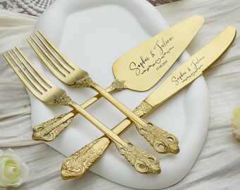 Coupe-gâteau Personnalisable Gravure Couteau à Gâteau De Mariage Personnalisé Et Ensemble Dé Serveurs Set Service Gâteau Personnalisé Couteau à Gâteau et Ensemble de Serveurs, 2pcs Serveurs de Pâtisserie à Fourchettes à Gâteau - ZWILLING - série Dinner - Acier Inoxydable 18/10... Contenu de l'emballage Cet ensemble de couverts à gâteau comprend 1 couteau à gâteau, 1 spatule à gâteau et 2 fourchettes. Facile à utiliser – Grâce à son bord finement dentelé, la pelle à gâteau vous permet de couper, trancher et servir rapidement et facilement. Elle est idéale pour les gâteaux, tartes, quiches, steaks, filets de poisson, pizzas et autres desserts lors de vos réceptions. Ensemble de 4 couteaux et serveurs à gâteau de mariage avec fourchettes, ensemble de découpe de gâteau gravé pour ensemble de service de gâteau de mariage pour anniversaire de mariée Ce matériau est réputé pour sa durabilité, garantissant solidité et longévité. Le design élégant de ce service à gâteau de mariage ajoutera une touche d'élégance supplémentaire à vos moments privilégiés. Ensemble de 4 pièces de coupe de gâteau de mariage en or avec fourchettes en acier inoxydable, il existe de nombreuses couleurs au choix, argent, coloré, or, noir Matériau de haute qualité : cet ensemble de découpe de gâteau personnalisé est fabriqué en acier inoxydable de haute qualité, poli miroir, ne se corrode pas, ne rouille pas et ne ternit pas, et peut être utilisé pendant une longue période