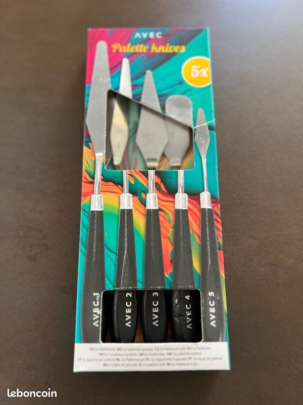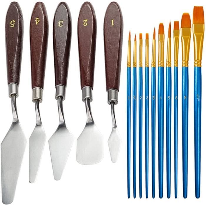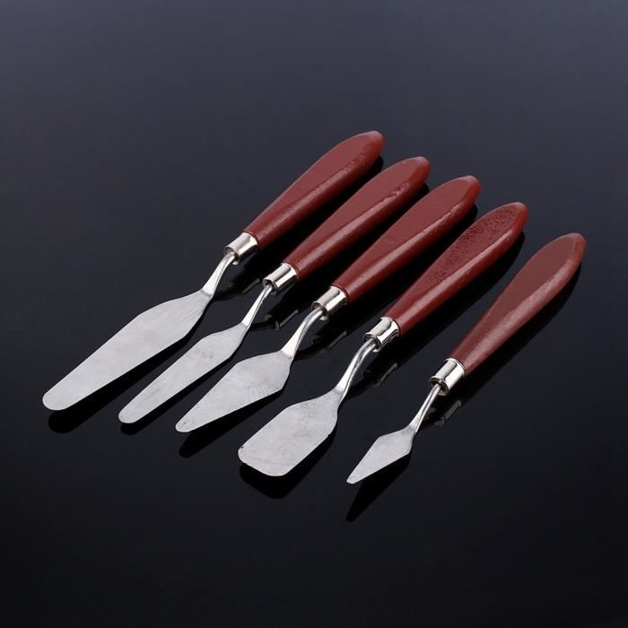 Peinture à L'huile 5 Pièces Couteau Peinture Palette Couteau Spatule Pour Peintureàl'huile Kit Peinture Artistique Grattoir de peinture à l'huile Enseble de 10 couteaux à peinture en... Couteau à peindre Sennelier n°1000 Spécification: Nom du produit: ANBOO Couteaux à Peindre Matériau: Bois, Aciers Inoxydables Couleur: Couteau Peinture: Argent + BrunRuban Adhésif: Blanc Taille: Couteau Peinture: Poignées en bois 10., 4 cm, longueur de la lame environ 12/10., 5/9., 5/8/6 cmRuban Adhésif: 20m*1., 2cm Quantité: 10 pièces Poids d'emballage: 160g Taille du paquet: 30*15*2cmLe forfait comprend: 5 x Tailles Différentes Couteau Peinture 5 x Ruban Adhésif Remarque: En raison des différents écrans et effets d'éclairage, la couleur réelle de l'article peut être légèrement différente de celle de la photo. Lefranc & Bourgeois - 6 Couteaux à peindre pour huile et acrylique Pas... Veuillez vous référer à la couleur réelle du produit. Résistant à l'usure et à la corrosion, facile à nettoyer, peut être utilisé pendant longtemps. Idéal pour l'utilisation de peintures à l'huile sur toile ou palette. Fonctionnalités: Cinq types de raclettes pour des besoins différents.