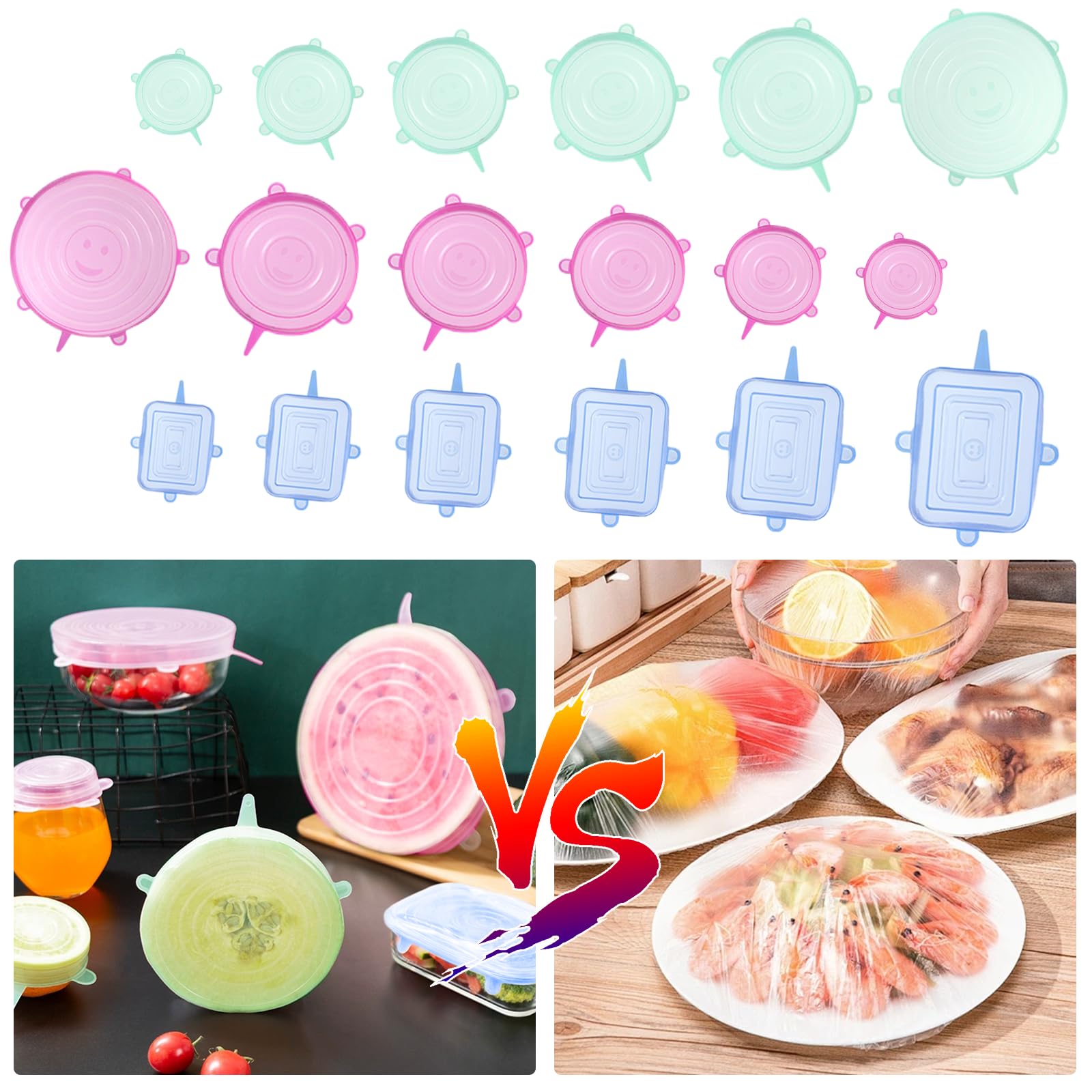 Lot de 18 couvercles alimentaires , 3 couleurs Le couvercle en silicone passe au lave-vaisselle, au micro-ondes, four et congélateur Alternative Film Plastique Conserve Et Confiture - Couvercle Silicone Alimentaire Universel 6 Tailles Differentes Micro Couvercles Pour Casseroles Et Poêles Bonne étanchéité et bonne élasticité, gardant aliments frais au réfrigérateur. Plsupn Couvercle en Silicone Réutilisable 18pcs Couvercles Extensibles... Couvercle Silicone Alientaire 12 Pièces, Couvercle Silicone Extensible... De petites poignées sur bord facilitent l'ouverture., suffit rincer lave-vaisselle. 【Ensemble pratique】Vous recevrez 18 extensibles couvercle silicone (6 chacun en bleu, rose et blanc) . 【Large application】Couvercle silicone alimentaire y compris des pots, bols, bouteilles, bouchons bouteilles de jus, tasses et d'autres bouchons de bouteilles taille similaire, le couvercle en silicone extensible est meilleur que l'utilisation d'une pellicule plastique aliments frais plus longtemps et empêche de manière fiable fuites. Chaque couleur a 6 tailles différentes : 6 cm/2,4, 9 cm/3,5, 11,5 cm/4,5, 14 cm/5,5, 16 cm/6,3, 19 cm/7,5., Peut être utilisé pour couvrir récipients de différentes formes et tailles 【Gardez aliments frais】Couvercle silicone alimentaire c'est un moyen durable de conserver et stocker aliments frais.