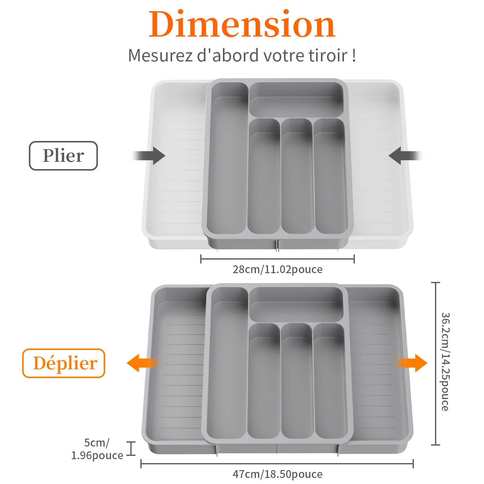 Rangement Couverts Plastique Noir SAMISO Range Couverts,Range Couverts Pour Tiroir,Organisateurs De Tiroirs Extensibles,9 Organisateur Cuisine Rangement Extensible 2 à 3 Compartiments, Range Couverts pour Tiroir... Range Couverts pour Tiroir 5 ou 7 Compartiments Le système de verrouillage et de rails extensibles garantit un glissement fluide et un ajustement facile, vous permettant de personnaliser l'agencement de votre range-couverts selon vos besoins. Range Couverts pour Tiroir,Organisateur Couverts Tiroir Cuisine... Nous vous répondrons dans les 24 heures, merci beaucoup! 🥄【Facile Nettoyer】Le matériau est durable et facile à nettoyer, il suffit de le rincer à l'eau et de l'essuyer avec un chiffon pour éviter la prolifération des bactéries et protéger la santé de votre famille. 🍽️【Design Réfléchi】Les bords des séparateurs centraux sont conçus à des hauteurs variées, ce qui facilite la prise des couverts. 😄【S'adapte Plupart Tiroirs】Mesurant 36,5*30,5*4,5 cm, le range couverts pour tiroirs s'adapte facilement à la plupart des tiroirs standard et de petite taille tout en offrant un vaste espace de rangement.