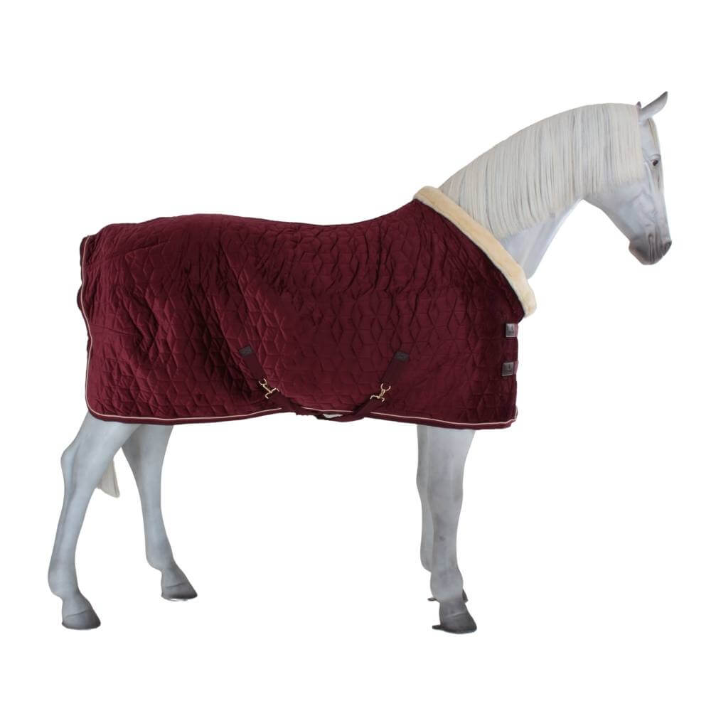Couverture Présentation Bordeaux Couverture De Présentation Velvet Poney 160gr - Kentucky Horsewear - KENTUCKY HORSEWEAR Couverture Cheval Kentucky Revendeur officiel Kentucky Horsewear en France Couverture de Concours Show Rug Velvet. Bordeaux. Extérieur en velours chic; Matelassage cubique pour une résistance accrue; Intérieur en imitation peau de... Die Decken sind damit echte Schmuckstücke mit vielen liebevoll gestalteten Details. Auf einen BlickAußen: widerstandsfähiges dreischichtiges Diamant-SteppmusterInnen: künstliches Kaninchenfell, 160 g WattierungKragen: künstliches SchaffellAbnehmbare KreuzbegurtungDoppelter BrustverschlussBungee-Schweifkordel mit Kunststoffabdeckung (abnehmbar, leicht zu reinigen)Exzellentes Wärme-Gewicht-Verhältnis für maximalen KomfortAnatomisch geformte PassformMaschinenwaschbar bei 30° (kein Trockner)100 % tierfreundlichMaterial und AusstattungKentuckys Turnierdecke präsentiert sich mit einer leichten Wattierung von 160 g und ist damit die perfekte Decke für kühlere Tage. Das Außengewebe aus sehr widerstandsfähigem, dreischichtigem Diamant-Steppmuster ist so konzipiert, dass keine Späne an der Decke hängen bleiben können, wodurch alle Kentucky Decken sehr pflegeleicht sind. Kentucky Turnierdecke 160 gEleganter geht es kaum. Das Highlight der Decke ist wohl der schicke Kragen aus künstlichem Schaffell, dass sich in jeder Hinsicht mit echtem Fell messen kann. Genauso weich und leistungsstark wie echtes Schafsfell, ist der große Vorteil des künstlichen Fells, das es mehr Wäschen übersteht und 100 % tierfreundlich ist. Dies ist zum einen extrem weich und kuschelig, wodurch Scheuer- und Druckstellen verhindert werden und zum anderen bleiben keine Pferdehaare im Lining hängen. Cette couverture de présentation avec un matelassage de 160g possède un revêtement intérieur en poils de lapin synthétique, offrant une sensation douce au contact de la peau. Cela permet également de prévenir des frottements et de l'accroche du poil dans le tissu