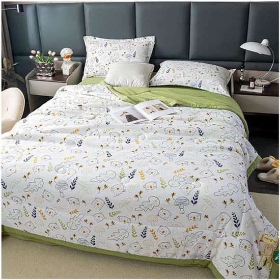 --Le couvre-lit chez AYSW parfait pour améliorer votre lit, qu'il soit fonctionnel ou fabuleux. Dimension : 220x240cm pour 2 personnes. Le couvre-lit convient à toutes les saisons comme dessus de llit ou votre couette et peut également être une couverture autonome pour les mois les plus chauds. --Modèle de Gaufrage: Le gaufrage ultrasonique est une technique sans fil couture en utilisant le principe des ultrasons. Dessus de Lit Imprimé "Bando" 220x240cm Bleu --AYSW dessus de lits vous propose un confort plus ultra en matière de sommeil fabuleux. DESIGN RÉVERSIBLE --1 couvre-lit, 2 styles différents, plus richement décorez votre lit. Couette de lit Légère pour été Feran Ice 200g blanc ABEIL Dimension... Parfait comme la décoration ou cadeau de mariage pour votre famille ou vos amis. LÉGER & DOUX --Peut être utilisé comme couverture, couvre-lit et couverture en toute saison, idéal pour les voyages et les cadeaux. Hypoallergénique, anti-acariens, antidérapant, résistant à la décoloration et aux taches, gardez votre corps au frais pour vous assurer un beau sommeil toute la nuit. Couette 200x200 Couvre-lit 220x240cm.couette Matelassée Avec 2 Taies D'oreiller De Couvre De Lit WOLTU Couverture de lit rembourré et matelassé .Dessus de lit Doux... Le motif simple peut ajouter une romantique supplémentaire à votre chambre, ce qui vous apporte un sentiment de fraîcheur et de confort.