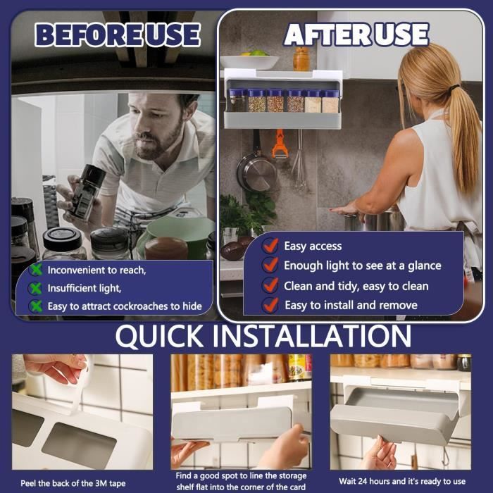 ✨【Matériaux premium durables】Fabriquée en PP/PET résistant aux chocs et corrosion, cette Etagere A Epices Tiroir Cachée répond aux normes de contact alimentaire. étagère Coulissante Pots épices Cozlly Lot De 2 étagères à épices,Extensible De 20 Cm à 38 Cm,Rangement Epices Tiroir à 3 Niveaux En Plastique,Presentoir A Epices Incliné Ajustable,Pour Sel,Épices,Vitamines Et Suppléments étagère à épices 📦 [Étagère à épices coulissante] - Solution d'optimisation de l'espace dans la cuisine 🔍 Caractéristiques du produit Conception coulissante Le support rétractable s'insère sous les étagères standard et peut accueillir six pots à épices, optimisant ainsi l'espace vertical. Cette étagère à épices maligne se fixe sans perçage sur tes portes de placard et peut s'étendre pour s'adapter à l'espace. Elle vient avec 6 pots transparents... ✨【Installation sans perçage】Un système de fixation double (bande adhésive haute résistance + crochets) permet une pose sans outils ni perçage. Le Porte-Étagère Range Epices Cuisine se fixe solidement sur les portes ou fenêtres de placard, même sous charge lourde. Rangement Epices Tiroir Etagere A Epices Tiroir Cachée Avec 6 Pot À... Elle accueille 6 bocaux à épices, libérant tiroirs, plans de travail et zones de stockage pour une cuisine parfaitement organisée. 📏 Spécifications Matériau : PP/PET Dimensions du pot à épices : 4,5 cm x 10 cm Dimensions du support extractible : 32 x 13,5 x 9,5 cm Contenu : 1 support extractible + 6 pots de rangement ⚠️Remarque : En raison des différences d'éclairage et d'écran, de légères différences de couleur sont inévitables. ✨【Visibilité et accessibilité optimisées】6 contenants transparents en PP/PET (grade alimentaire) montrent le niveau des épices. Étagère À Épices Extensible À 3 Niveaux Pour L'Intérieur De Placard De Veuillez vous référer au produit réel pour la couleur. Le mécanisme Rangement Epices Tiroir permet d’accéder aux aromates d’un geste, sans ouvrir les portes pendant la cuisson.