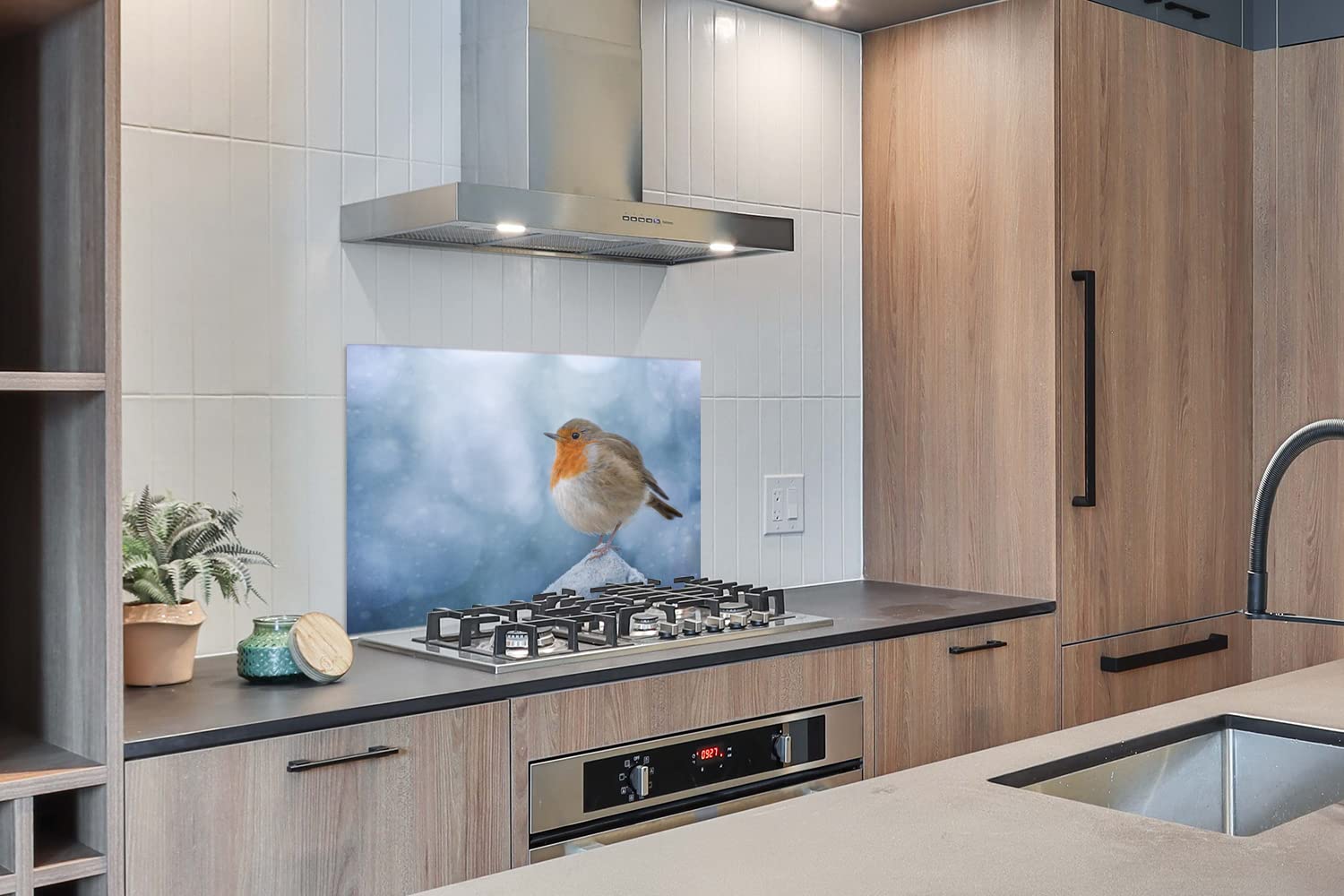 En plus de protéger le mur arrière de votre cuisine, ce dosseret de cuisine est aussi le moyen idéal d'égayer votre cuisine. Ce matériau a un revêtement spécial, de sorte que la protection anti-éclaboussures soit facile à nettoyer avec un chiffon humide et résistant à la chaleur. Impression extrêmement nette : impression photo unique pour votre cuisine. Cette crédence protège le mur arrière de votre table de cuisson des éclaboussures et des restes de nourriture. Fond de hotte sur mesure Bleu paon - Panneau, Adhésif, C La protection murale est en aluminium. Revêtement résistant à la chaleur, Facile à nettoyer, Manuel inclus Achetez Credence Paon - Plumes - Nuit Fond de hotte 100x65 cm Credence aluminium Plaque inox de cuisine Vous pouvez choisir entre les petites tailles (60x30 cm) et les tailles XXL (120x60 cm). Le paon bleu montre ses plumes avec des yeux. Aspect luxueux : l'aluminium de 3 mm d'épaisseur a un aspect luxueux. Credence Cuisine Aluminium Crédence De Cuisine Fond De Hotte En Verre Trempé Plume De Paon Protection Murale Motif Paon Bleu 100x65cm Disponibles dans de nombreux motifs tendance (crédence terrazzo, marbre, industriel, carreaux de ciment, couleurs unies…), nos crédences aluminium s’installent en quelques minutes pour un rendu durable, élégant et personnalisable selon vos dimensions De nombreuses tailles : nos dosserets sont disponibles dans de nombreuses tailles.