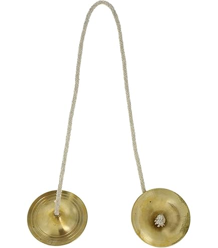 Manjeera Musique Indienne Cymbales à Main Manjeera Laiton - 7.6cm Paire de cymbales manuelles Cymbales Traditionnelles Indiennes Achleshwar Metal Craft Brass Manjeera Lot De 2 Cymbales Paire Cymbales Main 7.6 Cm Le Manjeera se compose de deux plaques ou cymbales qui sont attachées ensemble avec un cordon ou une corde pour que le joueur puisse tenir le Manjeera avec les deux mains et produira un son de tintement en frappant frontalement une plaque contre l'autre Achleshwar Metal Craft Brass Manjeera Lot de 2 cymbales traditionnelles en laiton 7,6 cm