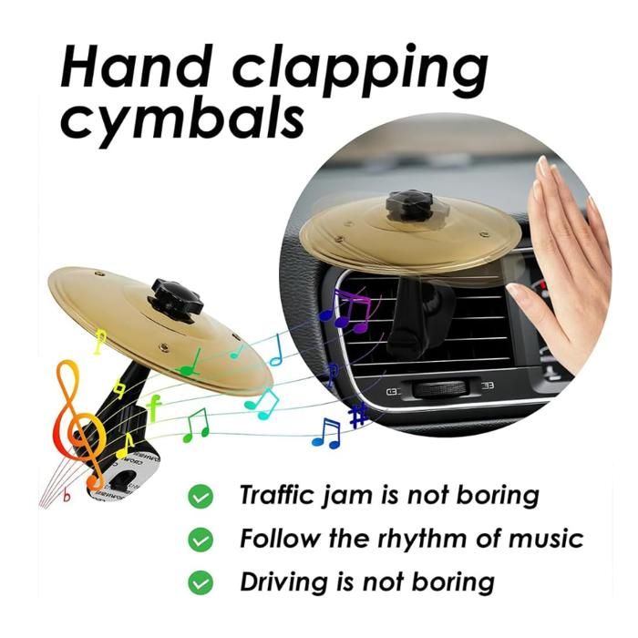 Cymbales de tambour de ventilation de voiture, Mini cymbales Mini Bureau Gong Table Carillon à Vent Instrument de Percussion... Mini Cymbale Voiture Car Crash Cymbals Air Vent, Cymbale De Voiture Crash, Cymbales Doigt Clips Ventilation Voitures, Pour Les Amateurs De Musique, Rend Votre Conduite Plus Amusante, Installation Facile Amélioration Expérience Conduite Musique Caractéristiques: 1., Son design discret ajoute une touche musicale subtile à l'intérieur de votre voiture sans encombrer l'espace limité de l'habitacle., 2., un motif de cymbale musicale tendance ajoute une touche artistique à l'intérieur de votre voiture, offrant un plaisir tactile pour soulager le stress de la circulation avec des robinets ludiques., 3., fabriqué en fer de qualité supérieure, le mini clip de cymbale reste indéformable et résistant aux chocs - Parfait pour un usage quotidien dans la circulation routière. Leur construction robuste garantit une durabilité accrue, ce qui en fait un compagnon fiable pour vos aventures en voiture. Cymbales Instrument De Musique Vecteur Illustration Isolée Vecteurs... Construction De Haute Qualité:Fabriquées en alliage et ABS de haute qualité, nos cymbale de voiture crash pour voiture offrent des sons agréables et répondent à une variété de besoins rythmiques musicaux. Équipement d'Intérieur Ludique:ajoutez des personnages musicaux aux véhicules avec ces cymbales de crash qui servent d'éléments décoratifs. Cadeau Parfait Pour Les Fans De Musique:que ce soit pour les musiciens, les batteurs ou tout simplement les fans de voitures créatifs, ce gadget décoratif original rend chaque voyage plus amusant et est un excellent cadeau pour toutes les occasions. Parfait pour les passionnés de voiture surprenants, les êtres chers ou les pilotes créatifs à la recherche d'accessoires automobiles fonctionnels mais fantaisistes qui personnalisent les intérieurs