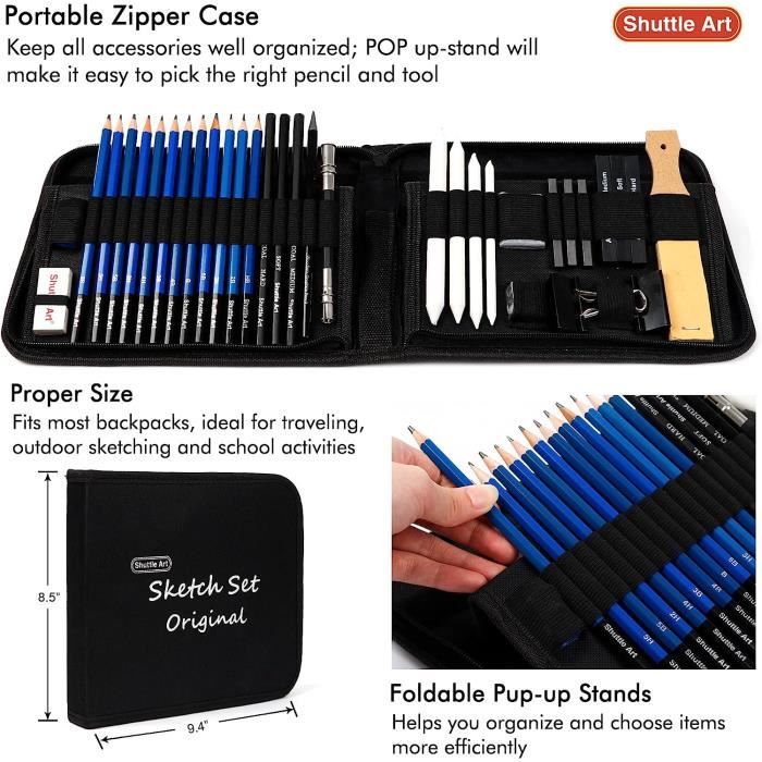 Crayons de Dessin, 72Pcs Crayon de Couleurs Professionnel pour Adultes... Trousse à crayons enroulable : Peut servir de trousse à crayons, de trousse de maquillage de voyage, ou même de sac de peintre ou d'artiste. Trousse à crayons : Les trousses lavables sont d'excellents cadeaux pour la famille, les amis, les enfants, les étudiants et les artistes. Crayon Dessin Professionnel Crayon De Couleurs Professionnel De Dessin Art Set, 51 Pcs Crayon De Trousse Voyage Crayons De Couleur Trousse en cuir : Cette trousse en toile enroulable peut contenir jusqu'à 72 crayons de couleur, stylos gel, marqueurs, crayons classiques et même des pinceaux. Couleurs variées -- Le paquet de crayons pré-affûtés pour adultes contient une large gamme de 72 couleurs et nuances différentes pour le dessin et la peinture. Ils ont une très bonne pigmentation et une bonne luminosité qui répondent à vos besoins quotidiens en matière de couleur Trousse à crayons en toile 72 trous : Légère et de qualité, elle est lavable, résistante aux taches, très résistante à l'abrasion et facile à nettoyer. SURENHAP crayon de couleur de dessin Ensemble de crayons de couleur 180